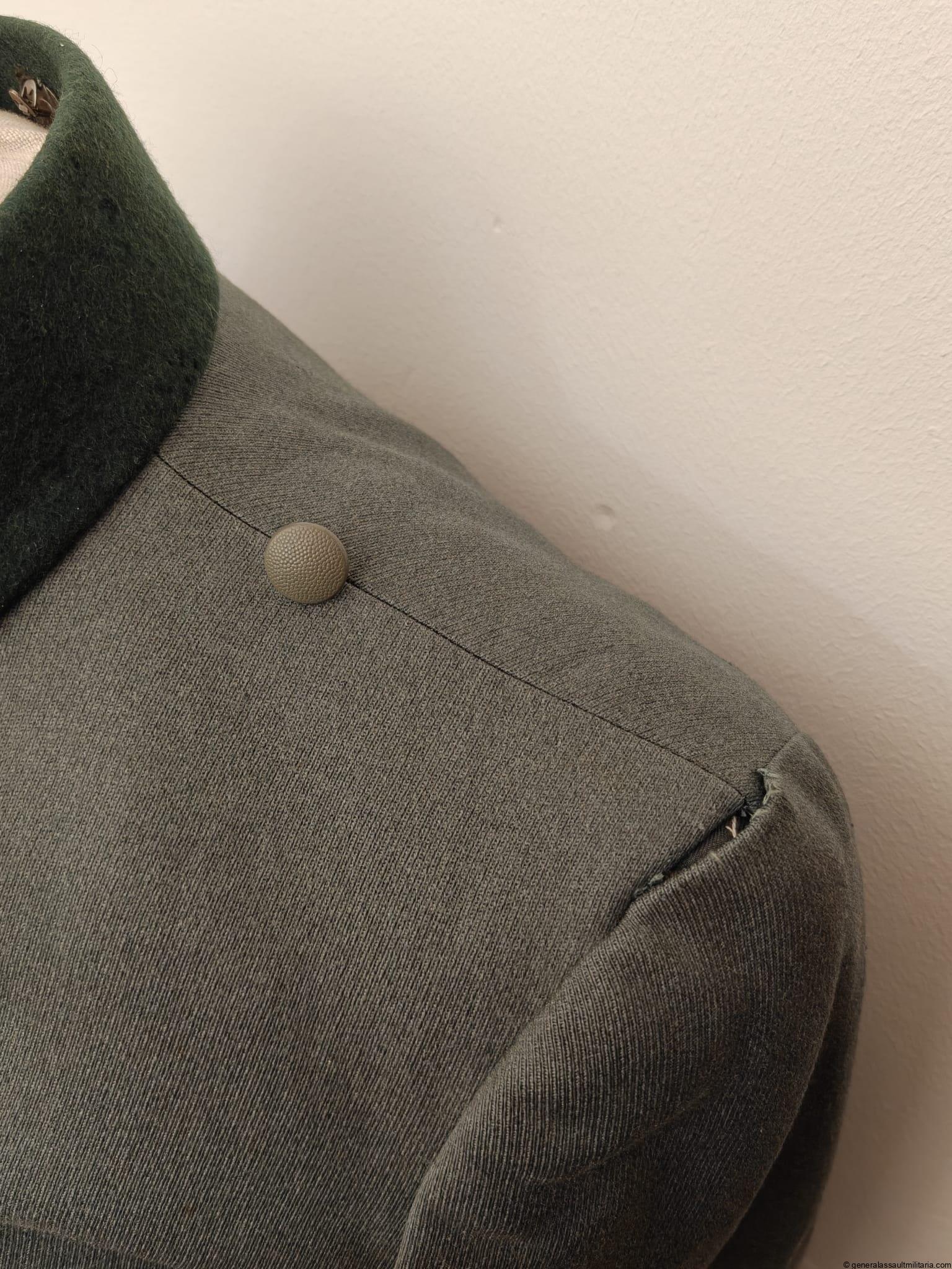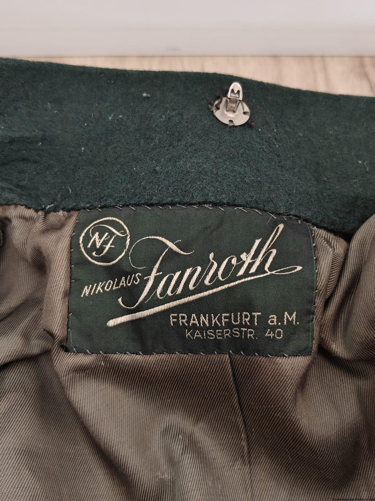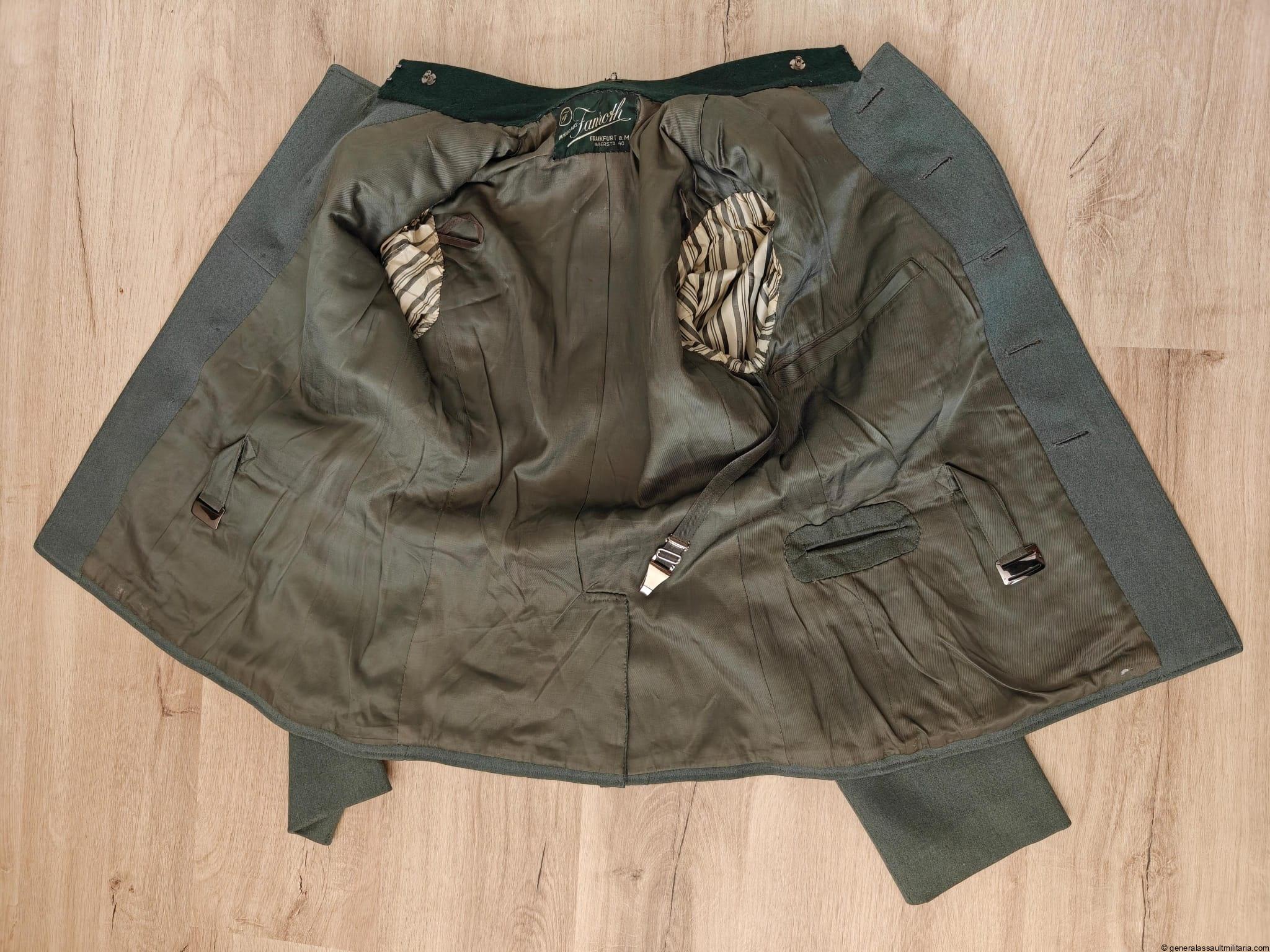 Stripped heer officers tunic. Very good condition, only one (moth)nip (photographed). One award has been pinned on the breastpocket in the past. Gorgeous tunic for a restoration project! Marked Nikolaus Fanroth – Frankfurt on the inside.