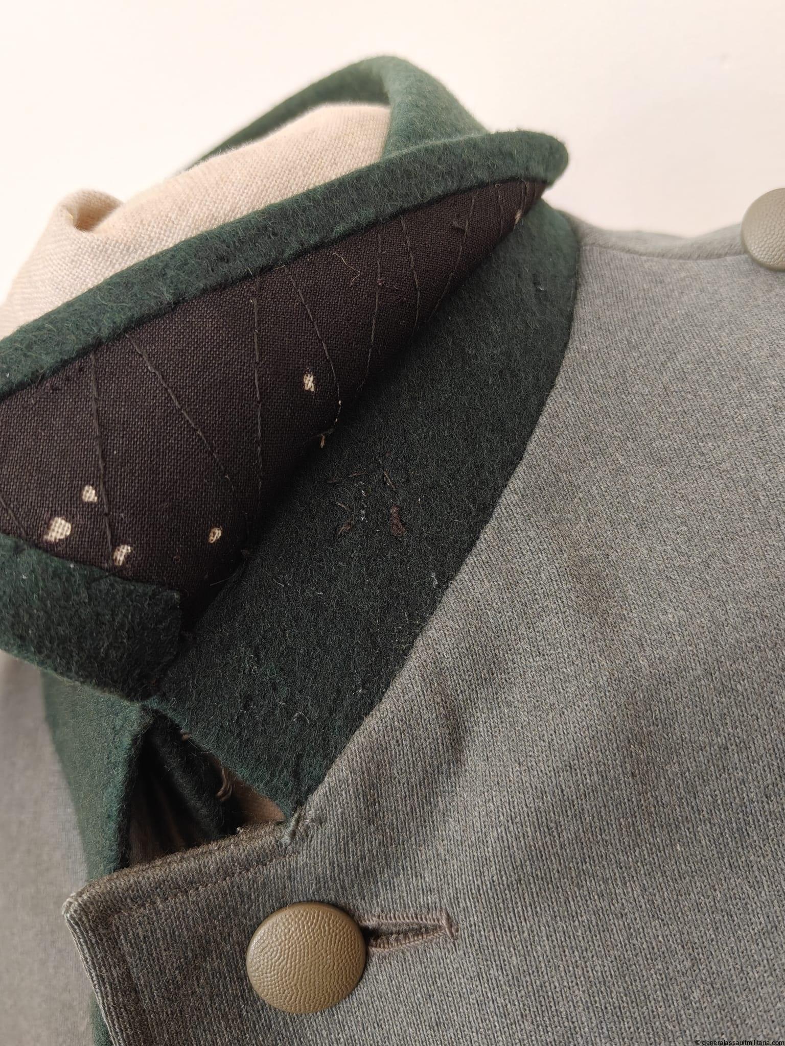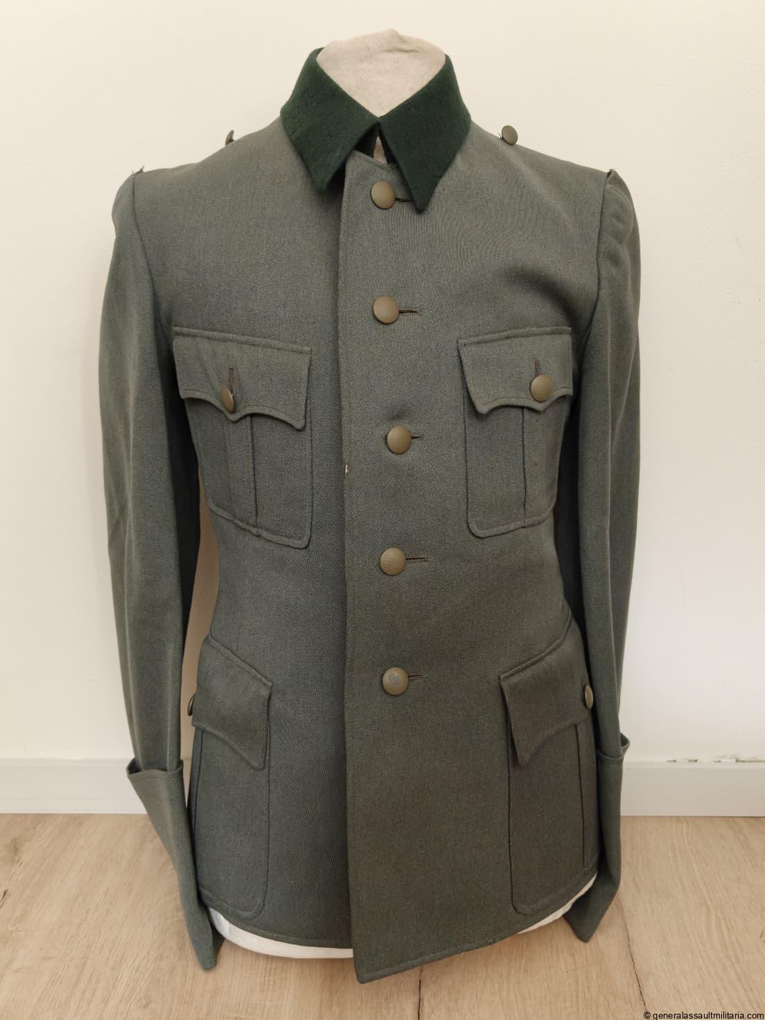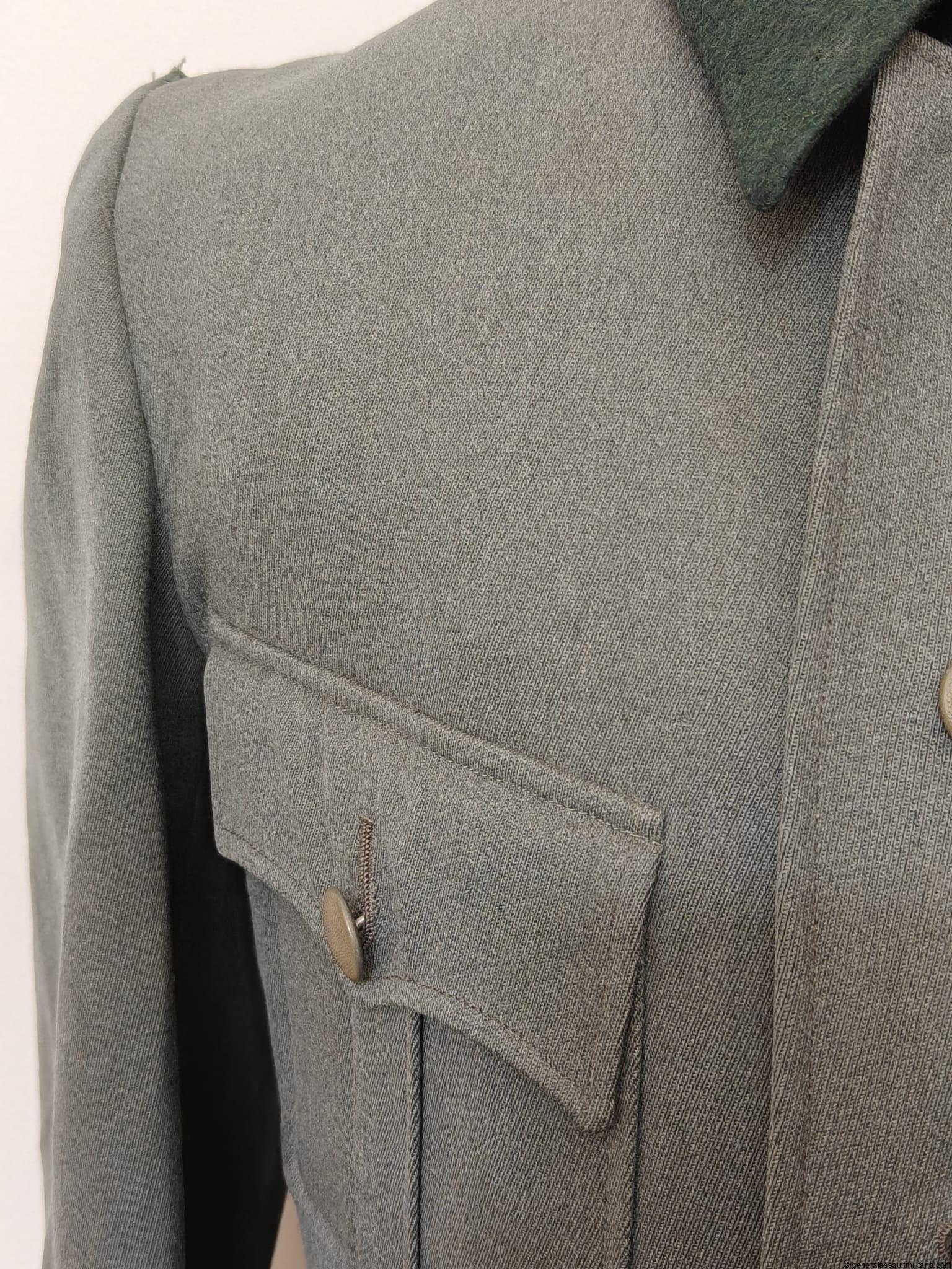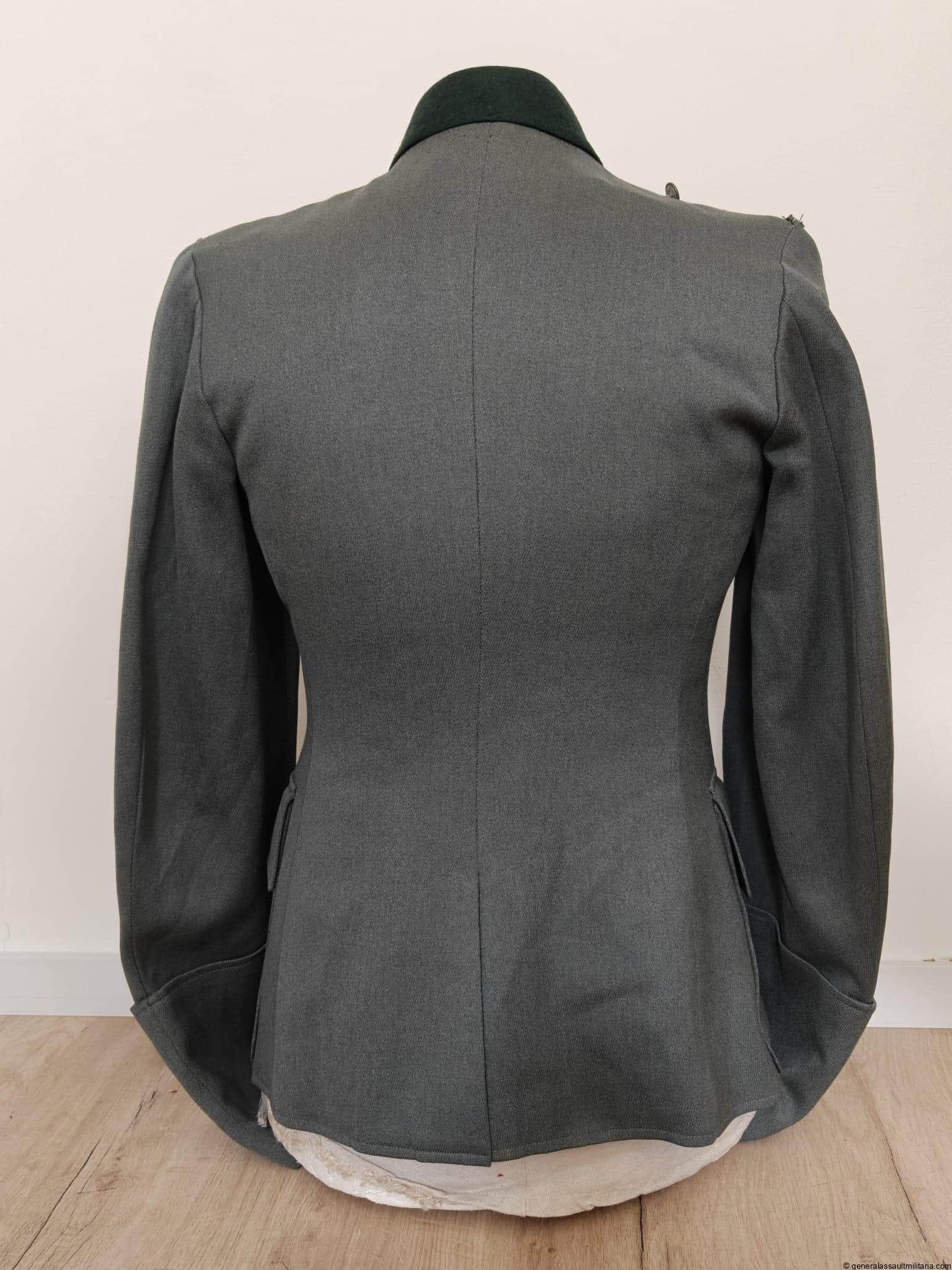 Stripped heer officers tunic. Very good condition, only one (moth)nip (photographed). One award has been pinned on the breastpocket in the past. Gorgeous tunic for a restoration project! Marked Nikolaus Fanroth – Frankfurt on the inside.