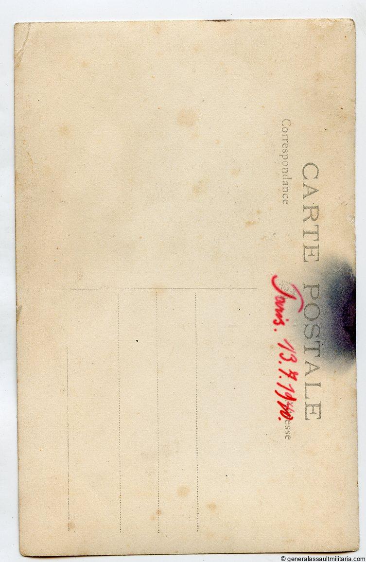 Stug portrait taken in Paris 13.7.1940. Postcard size carte postale, excellent condition.