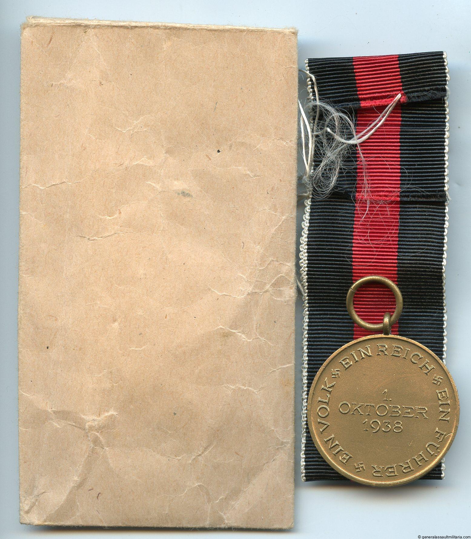 Sudetenland medal – Förster & Barth, Pforzheim. Early tombac construction with matching F&B marked packet and ribbon. Remains in mint condition.