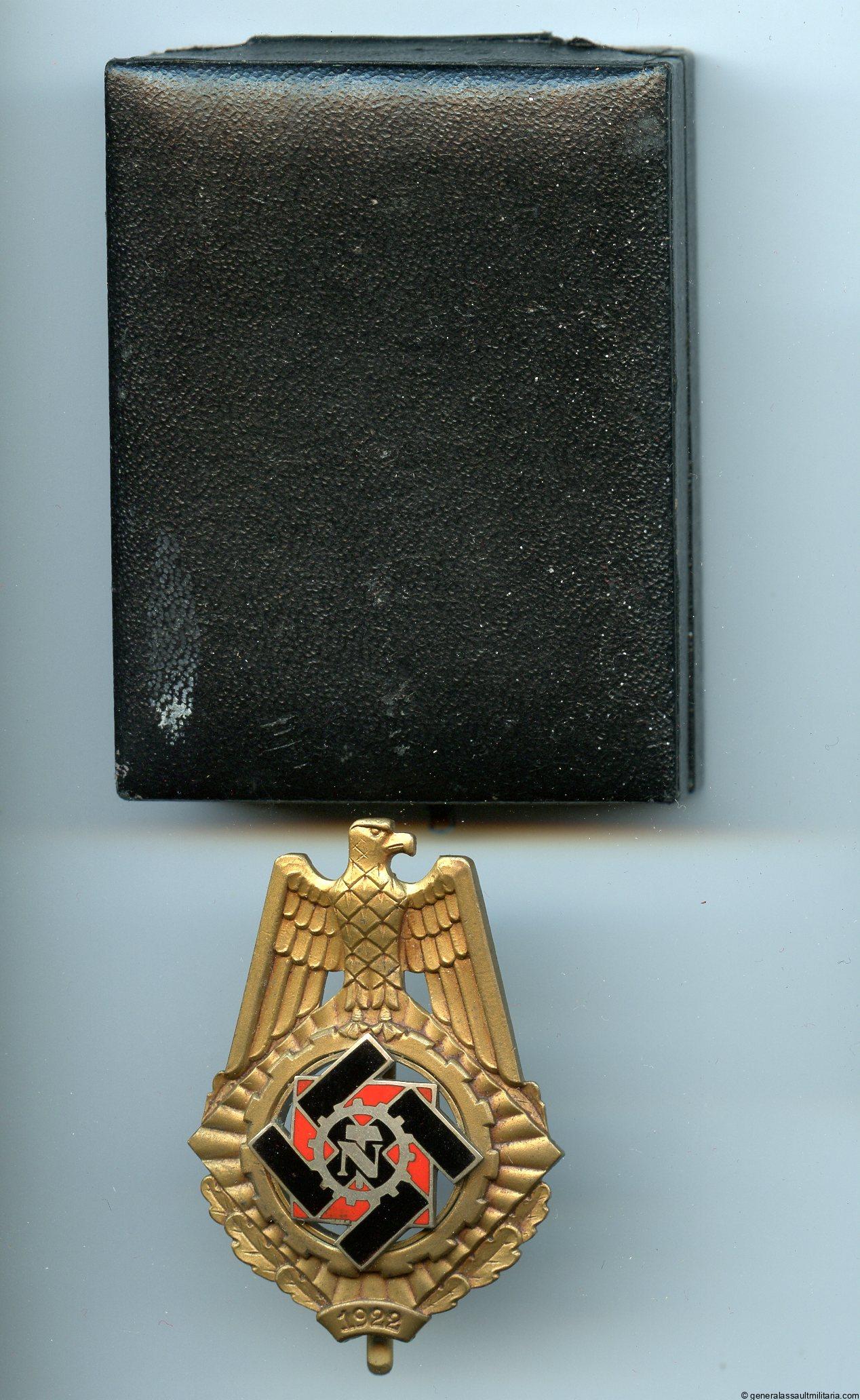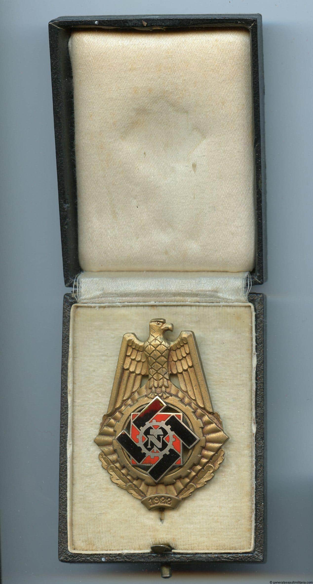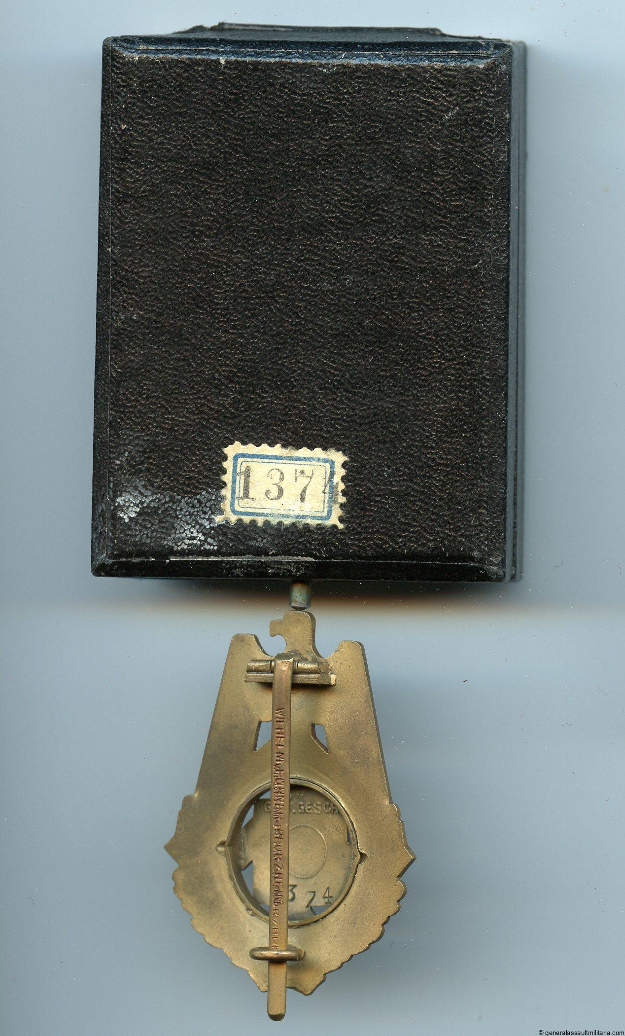 TeNo 1922 badge Nr 1374 – Wilhelm Fühner, Pforzheim. Technische Nothilfe Honour badge 1922 with number 1374 on both the case and badge. Remains in unworn condition with only minimal fading of the bronze on the reverse edges. Shows a clean and still scratch free enamel inlay. Very well designed and high quality award with lots of different aspects and details to it. The pin is maker marked with the W.Fühner mark. The case remains in very good condition with a few white spots on the front and bottom, but overall no damage to the corners or inlay.