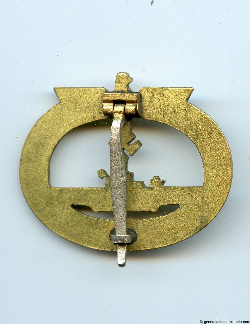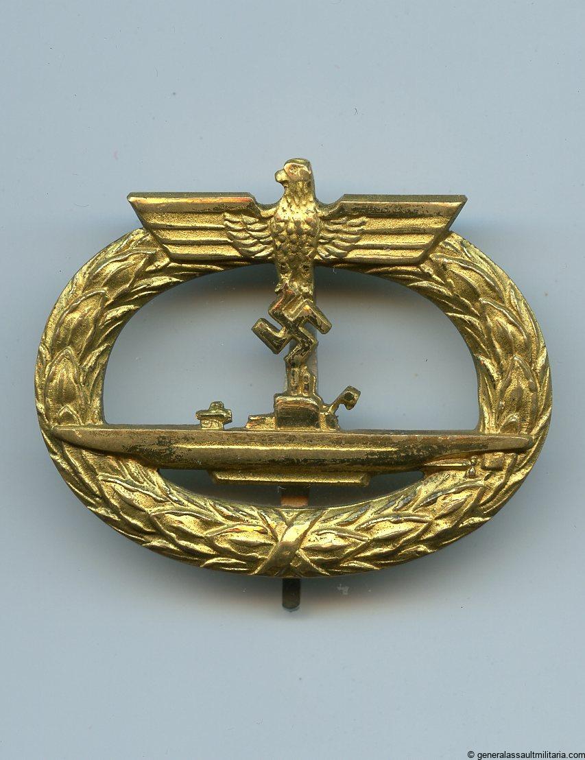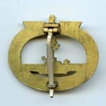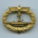 U-boat badge – Schwerin, Berlin. Early war unmarked Schwerin design U-Boot Kriegsabzeichen. Remains in lightly worn condition and shows nearly all fire gilded finish and polishing still present. High quality Kriegsmarine award with a beautiful light wear pattern.