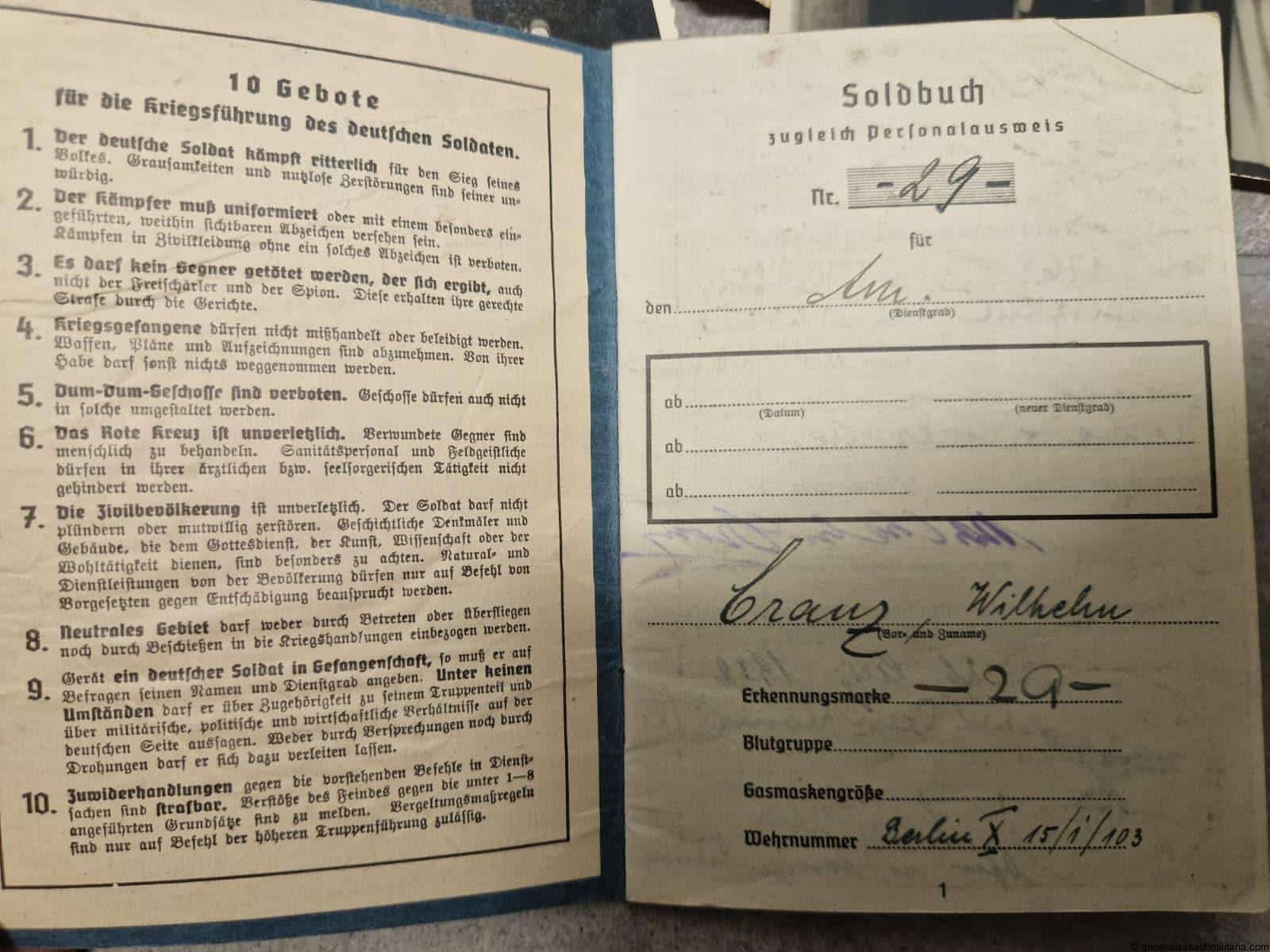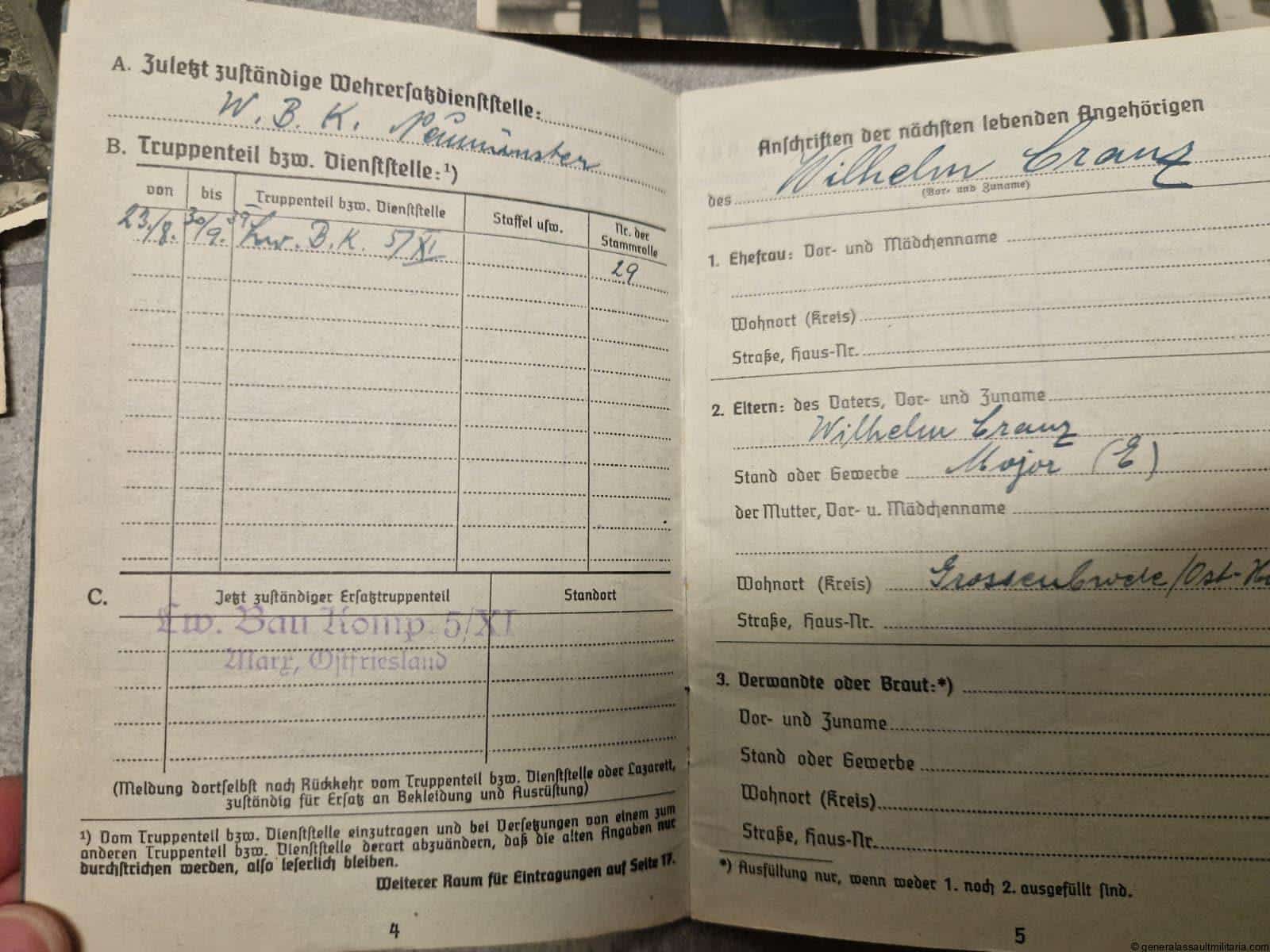 3. His Luftwaffe Soldbuch from his time with a LW bau unit, barely any entrees.