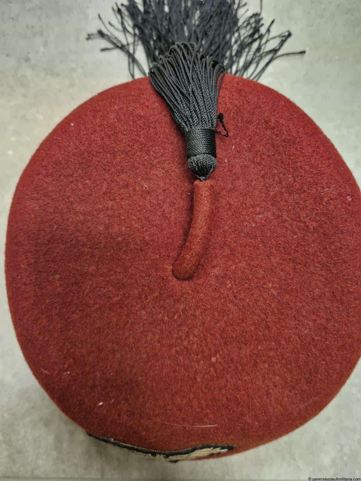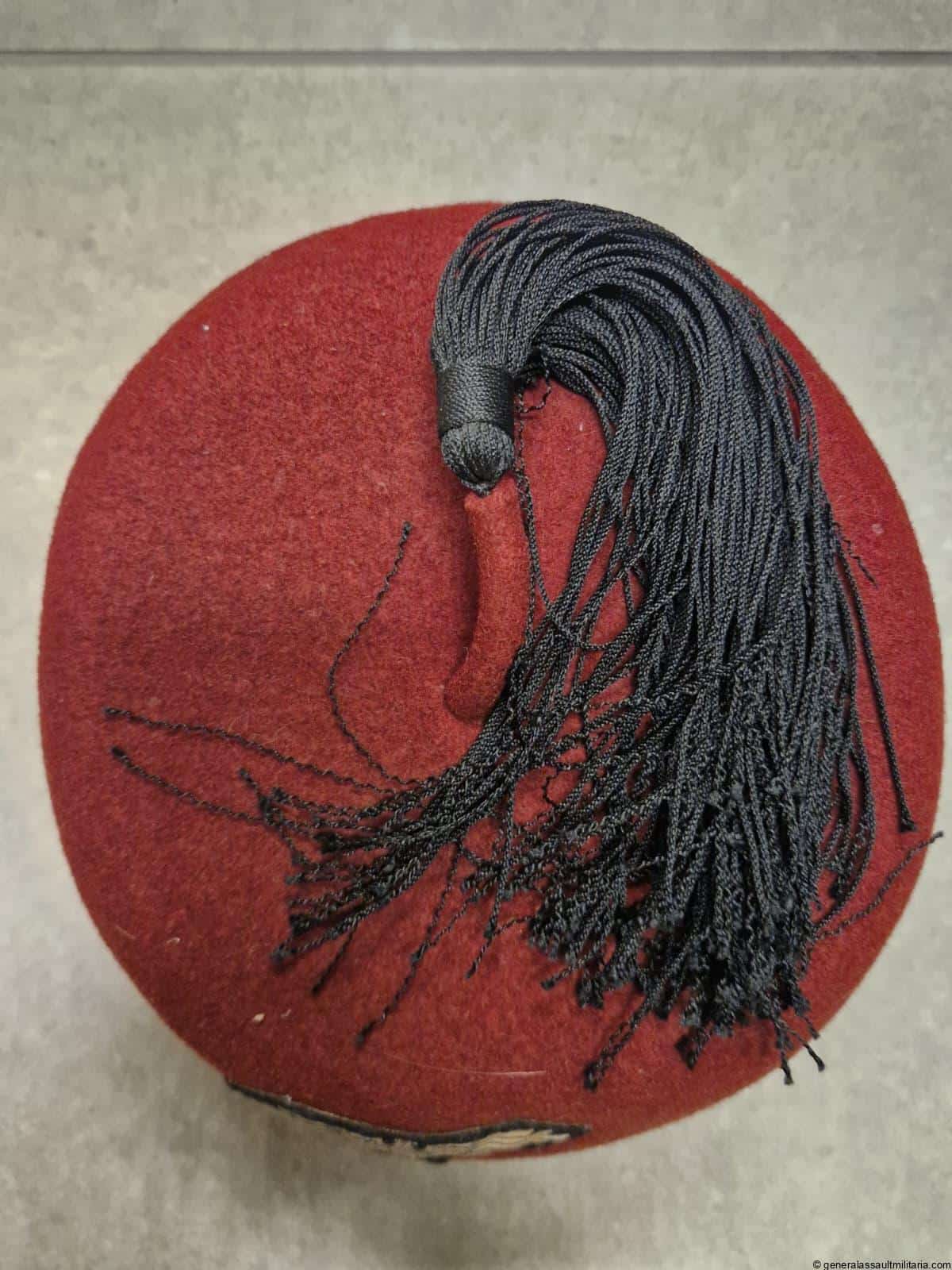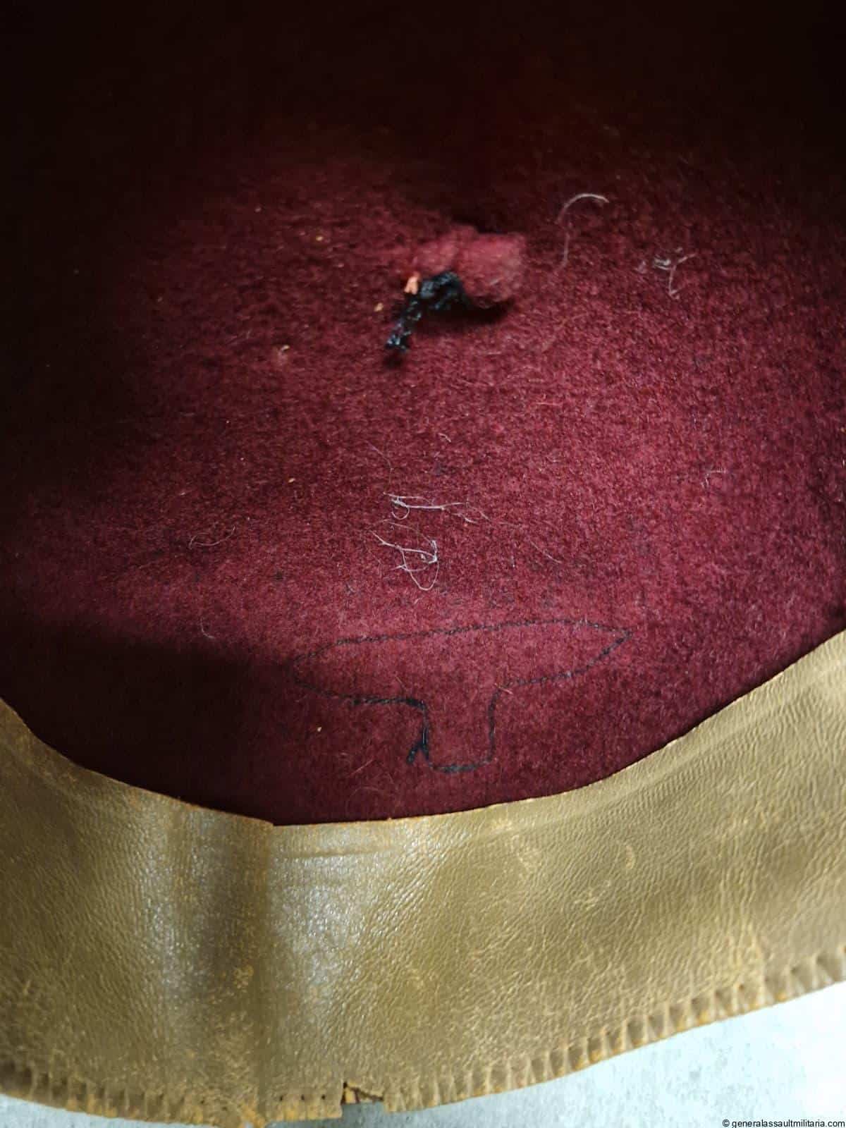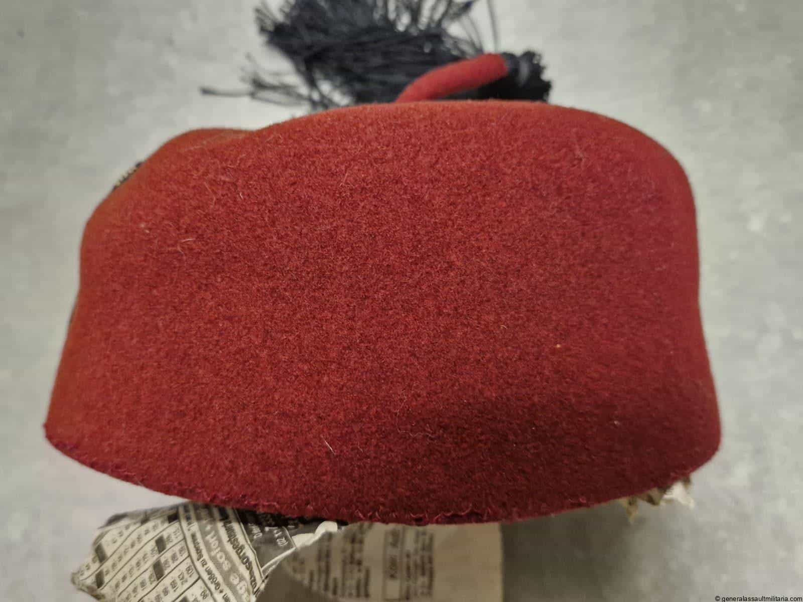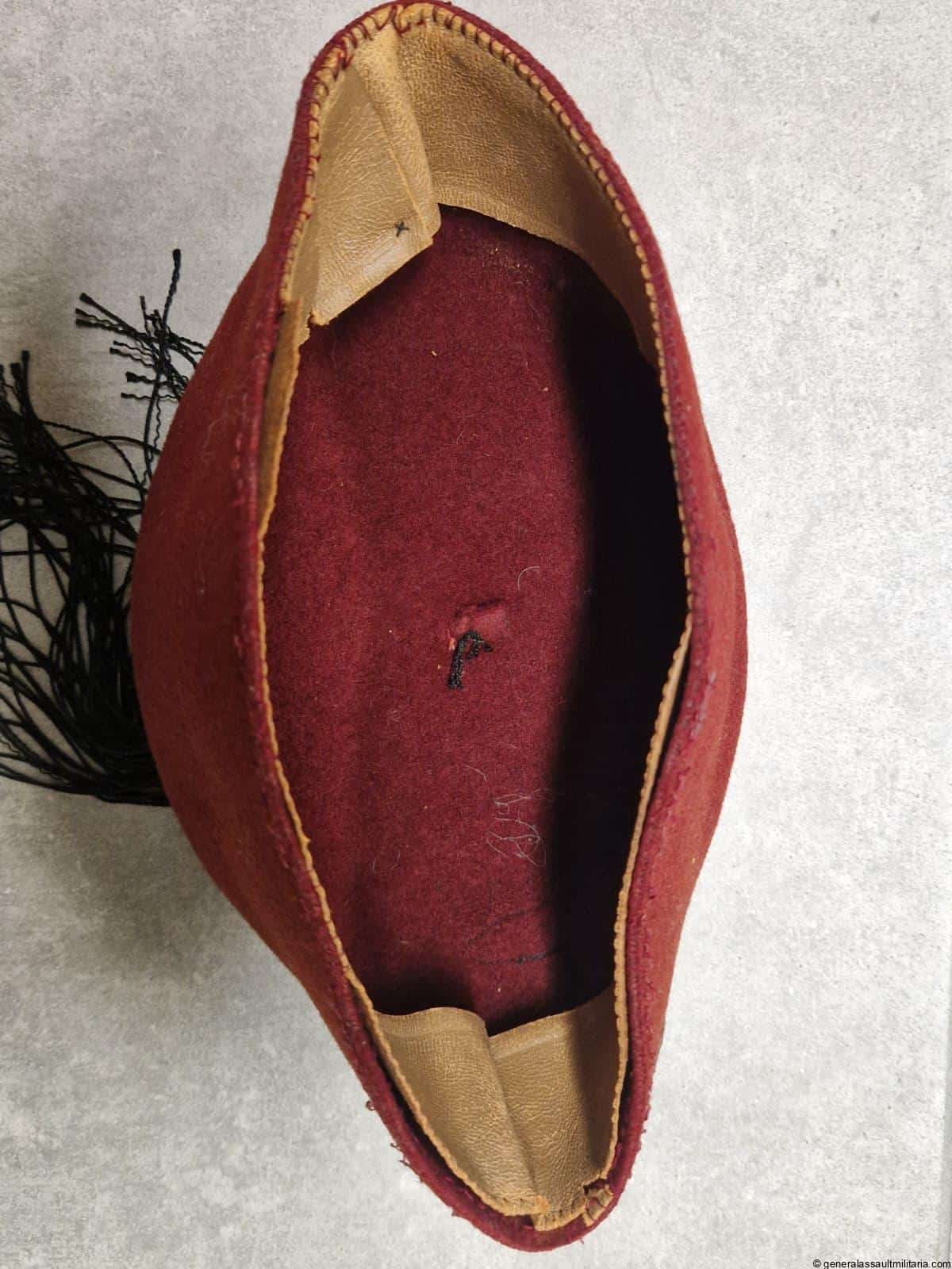 Waffen-SS 13.Gebirgs-Division “Handschar” Fez. Maroon color Fez as worn by the members of the 13th SS division. Remains in used condition with some separation on the stichting of the typical light brown sweat band. Both eagle and skull are the correct original sewn type with the padded reverse. Excellent worn example that is not so easily found and often has the insignia removed.