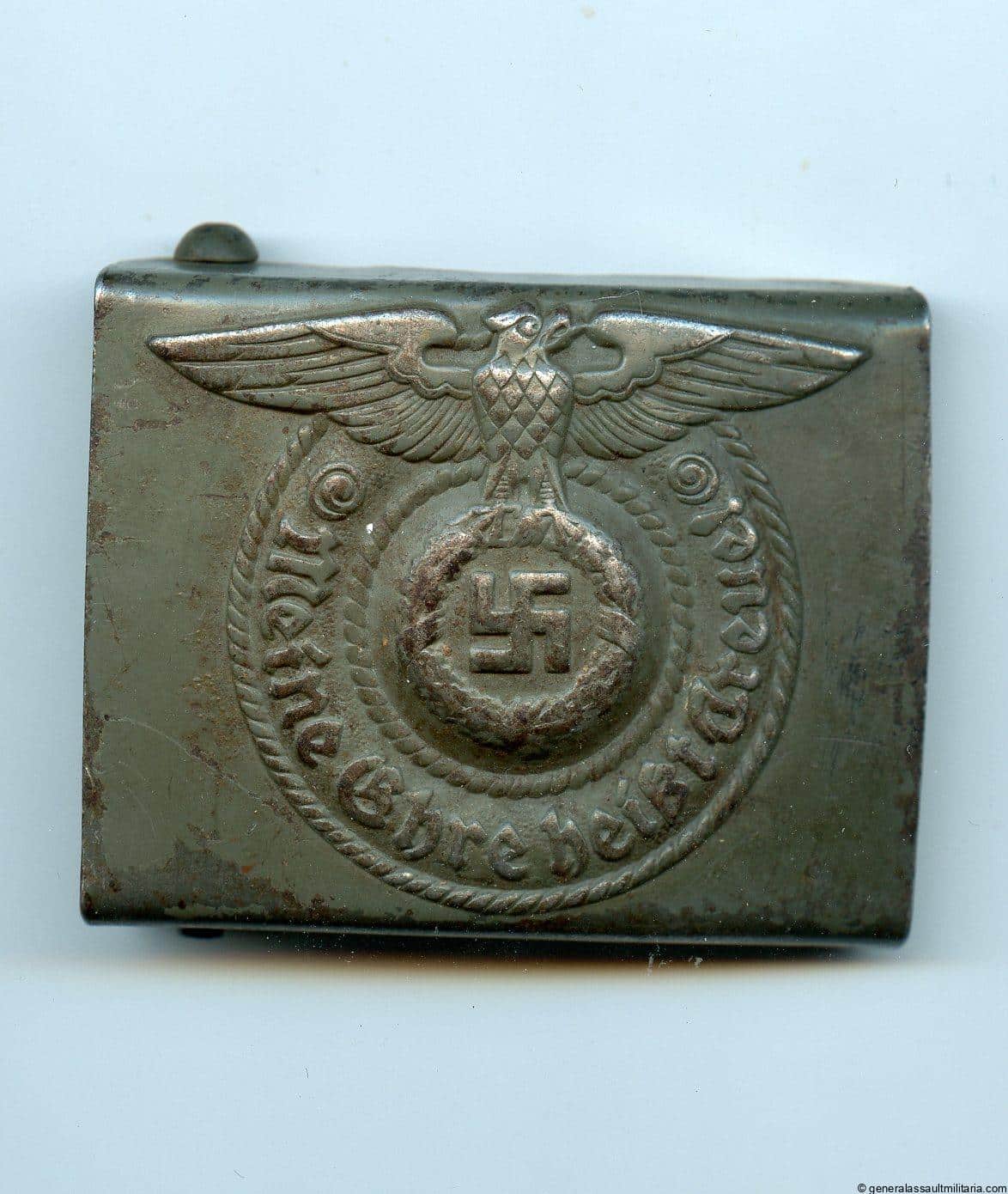 Waffen-SS belt buckle – RODO Robert Dold, Offenberg. Mid to late war SS buckle with typical dark green ‘RODO’ paint and makers mark next to the catch. Remains in very good lightly worn condition with only minimal surface rust and nearly all the original finish still present. Very uncommon and sought after buckle that I bought straight from the family member of the SS soldier. Sadly there was no further information available or it would have probably stayed with me.