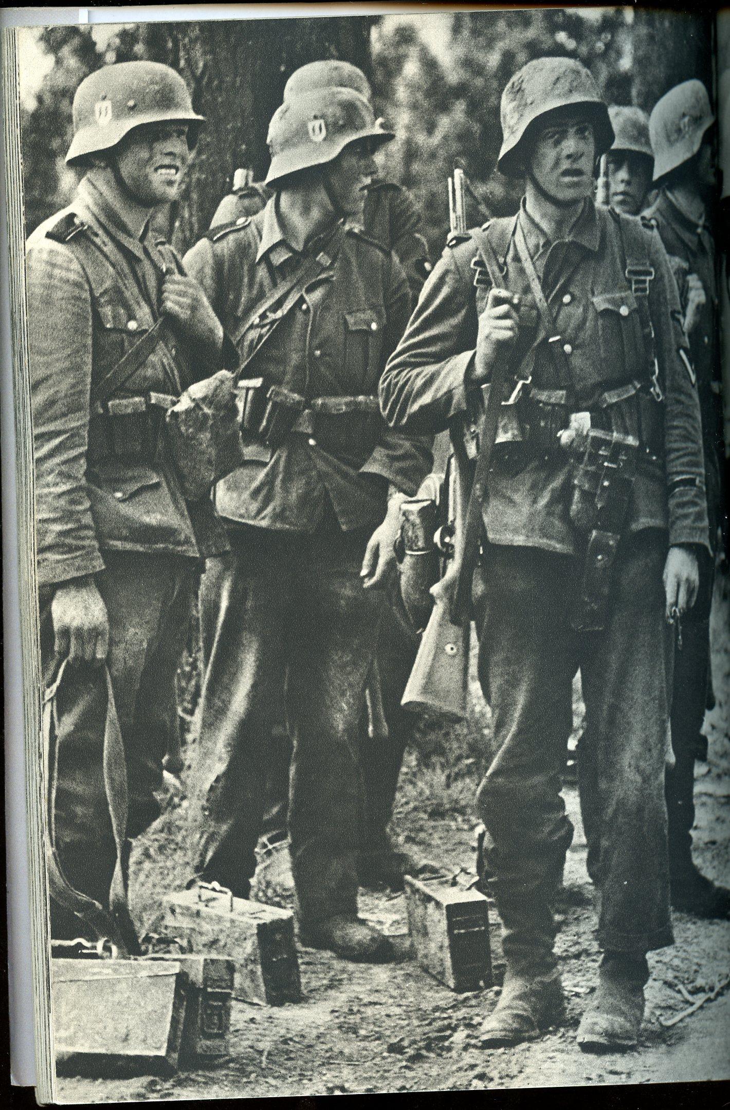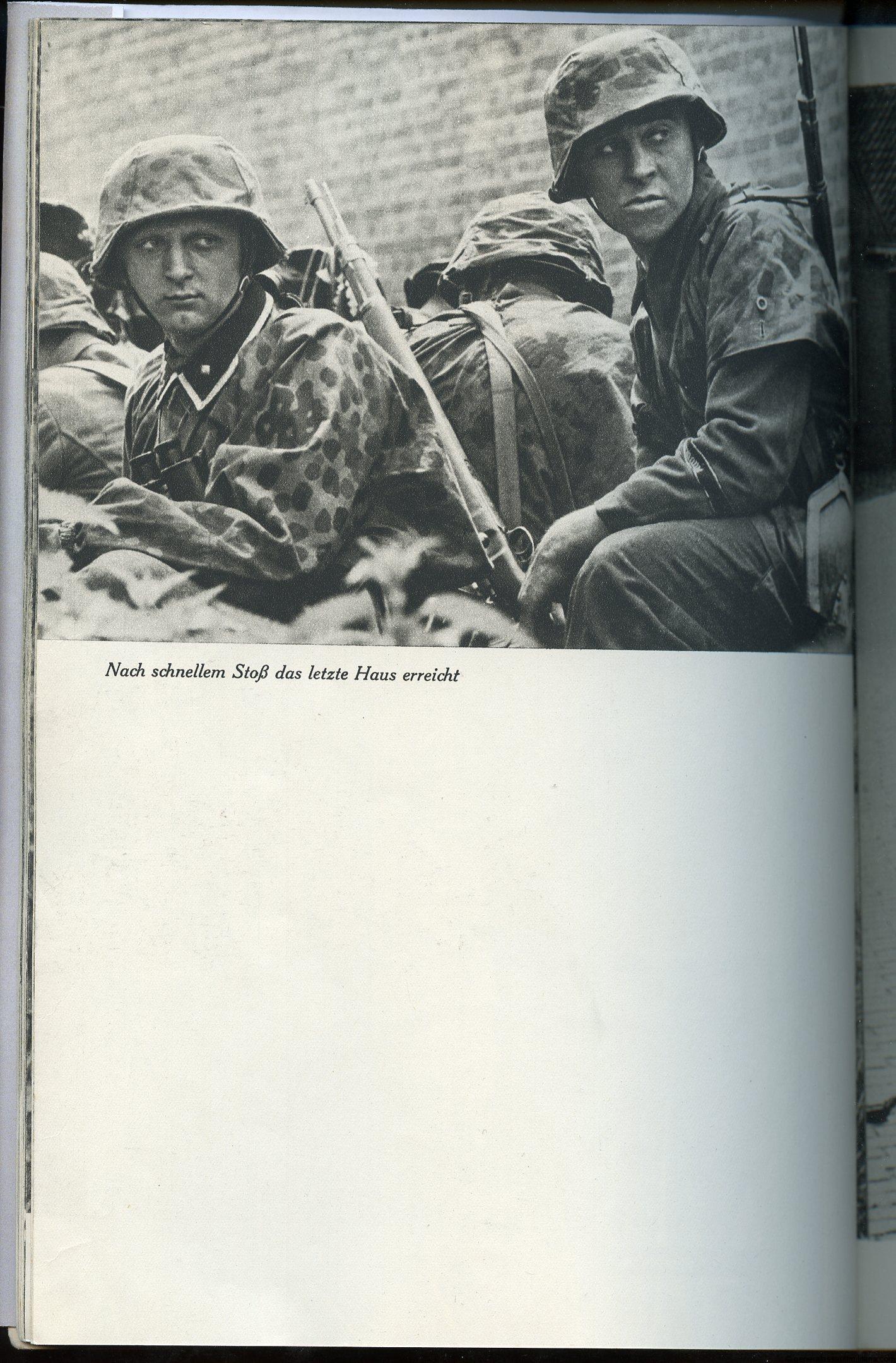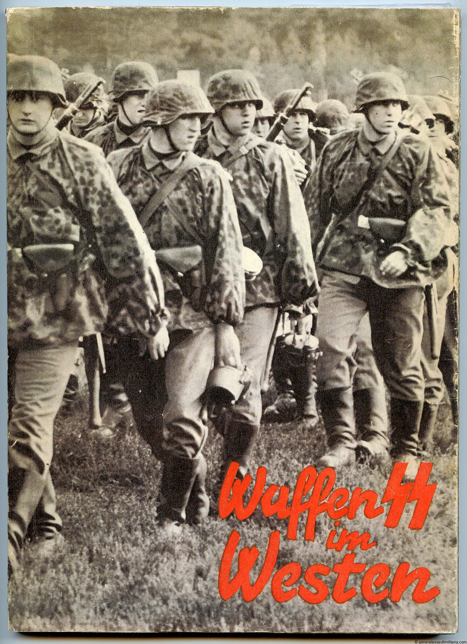 Waffen SS im Westen photo book. War time photo book with Waffen SS pictures from the campaign in France. Has many high quality shots with camouflages and different uniforms in wear. The front cover is often missing, this example was replaced with a copy. Besides the missing paper cover slip on the book remains in perfect mint condition.