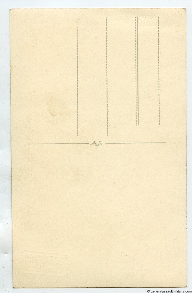 Waffen-SS portrait with Ek2 ribbon in wear. Postcard size, on Agfa portrait paper, excellent condition with Atelier stamp on the bottom. Very sharp and good looking portrait.