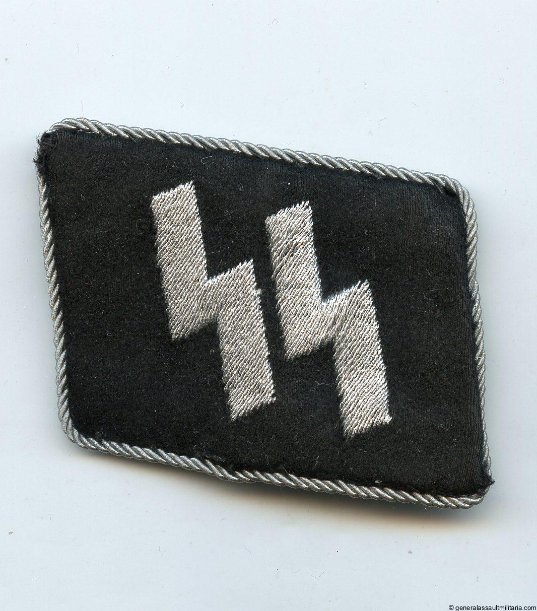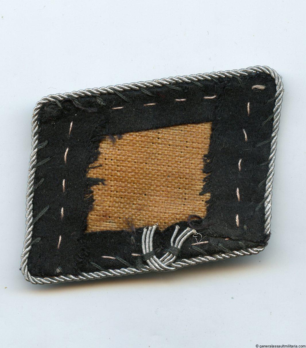 Waffen-SS Semi flat wire tab. Very uncommon and highly sought after machine flat wire woven SS runes on moleskin black cloth. Remains in excellent condition worn condition. Textbook example and not like the hand embroidered bullion types.