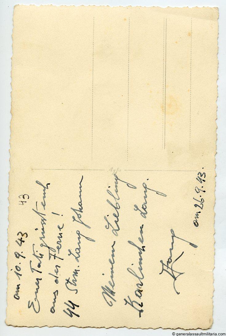 Waffen-SS Sturmführer portrait Johann Lang. Interesting and extremely sharp postcard size portrait, excellent condition, Agfa portrait paper, named on the reverse and dated 1943.