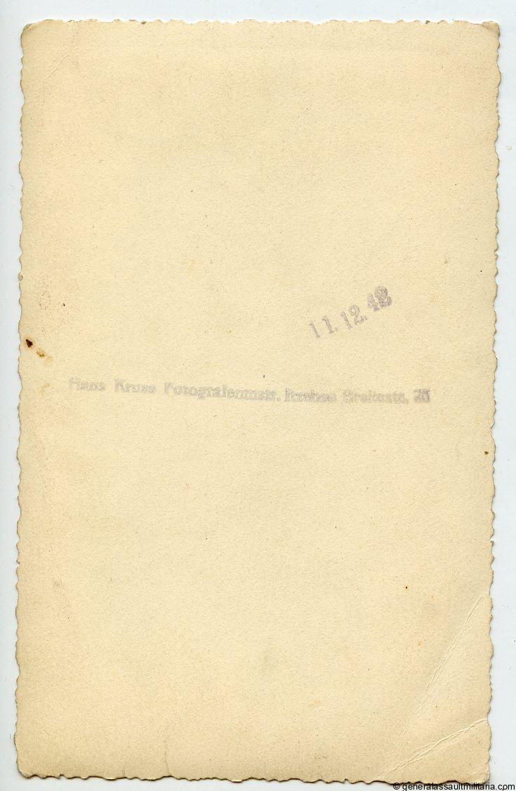 Waffen-SS Totenkopf portrait. Very sharp postcard size portrait of a Totenkopf Sturmmann with Ek2 and ost medal ribbon. Dated 11.12.1942 and with Atelier stamp on period unmarked photo paper. Excellent condition minimal wear to one corner.