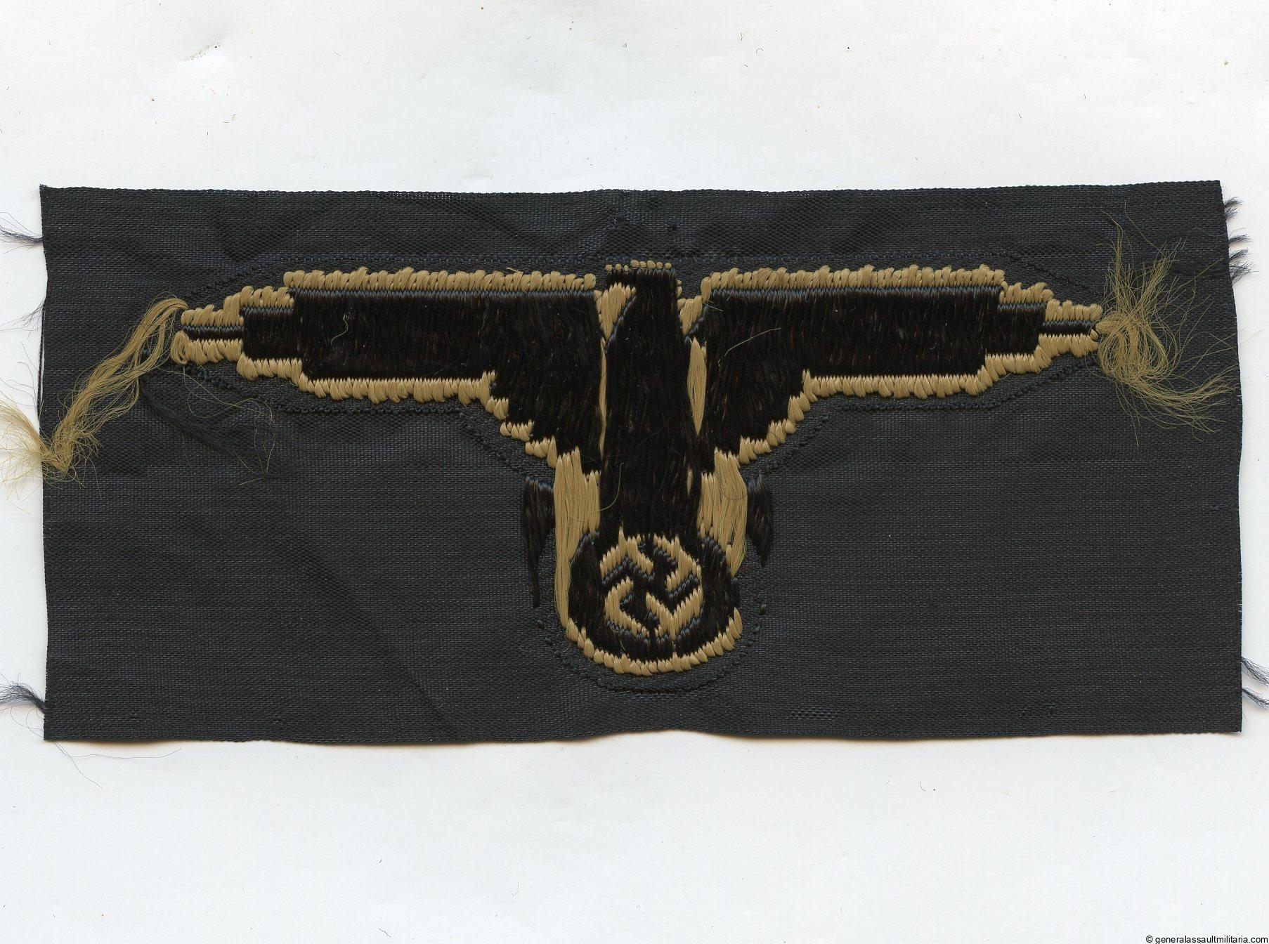 Waffen-SS tropical sleeve eagle – BeVo. Variant example with BeVo style woven pattern. Remains in perfect mint condition.