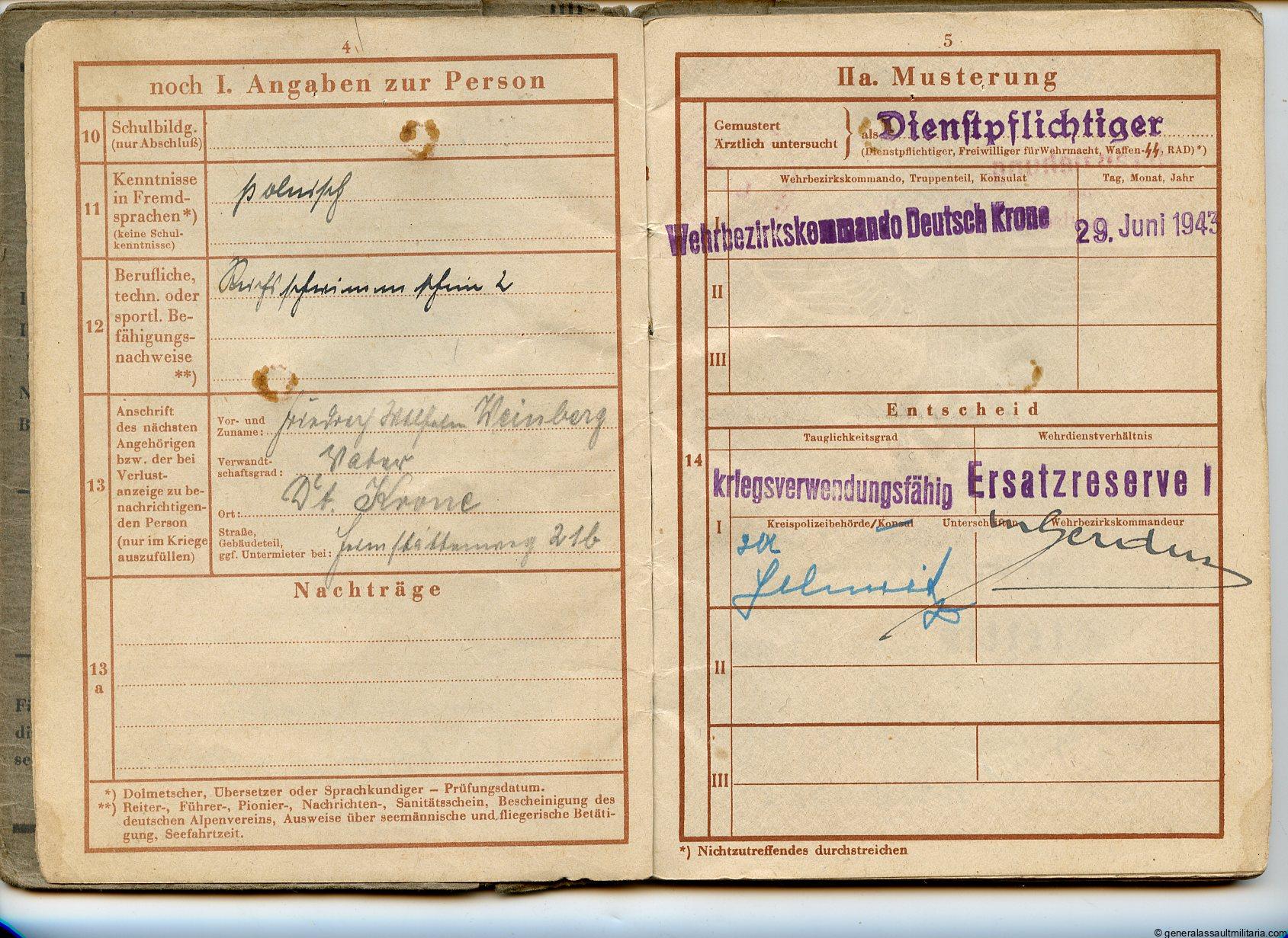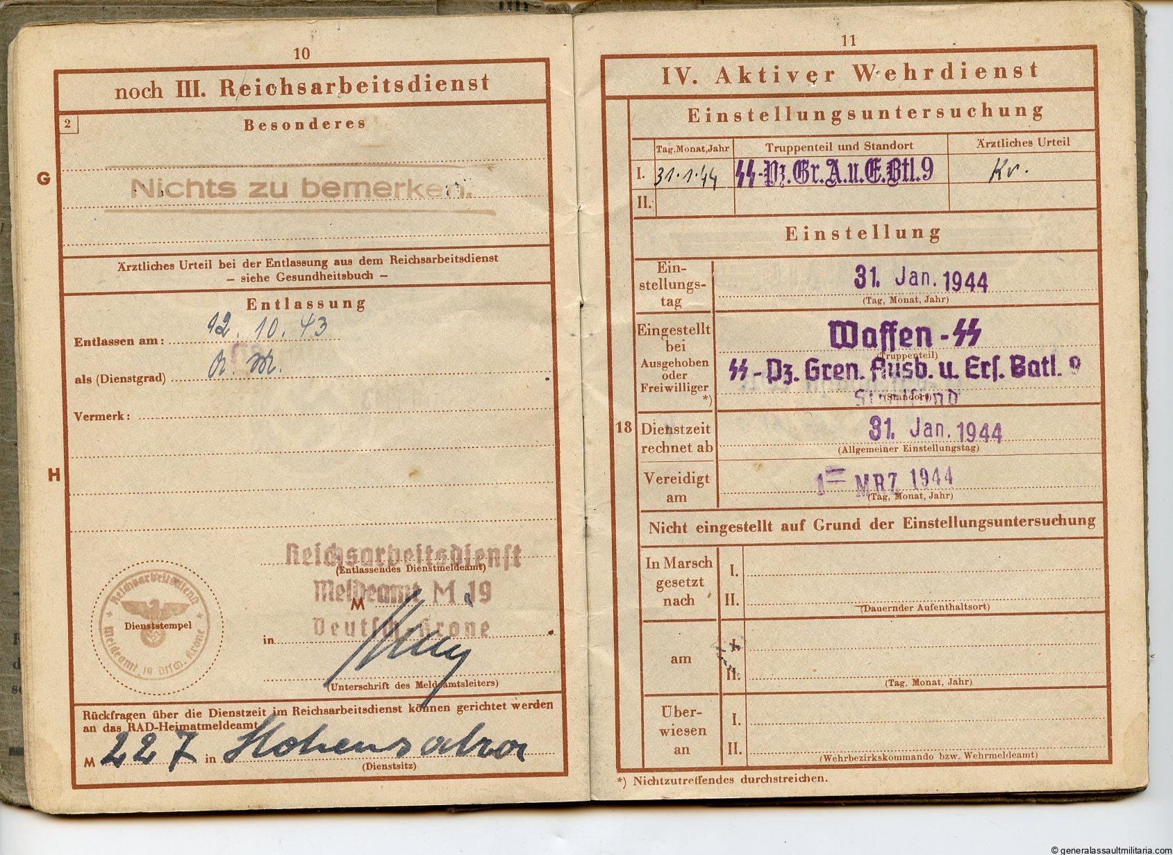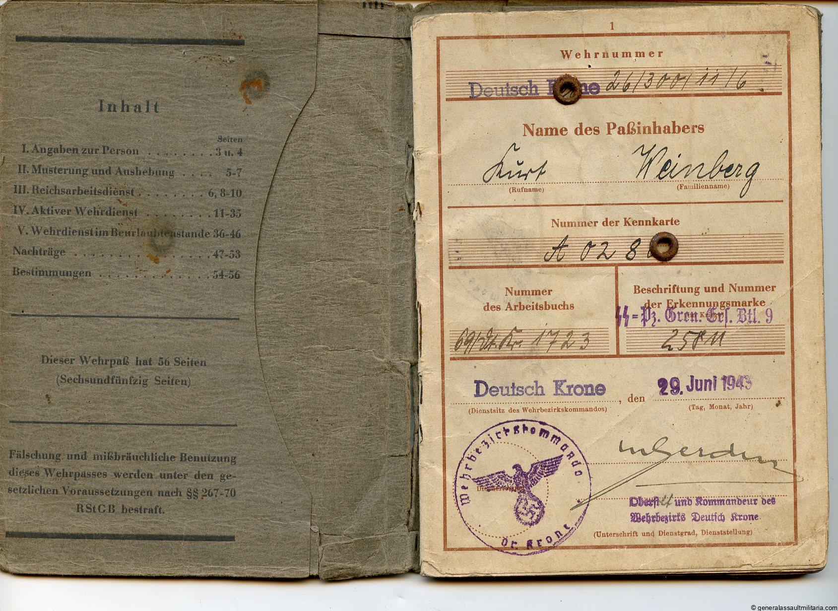 Waffen-SS Wehrpass – Kurt Heinberg