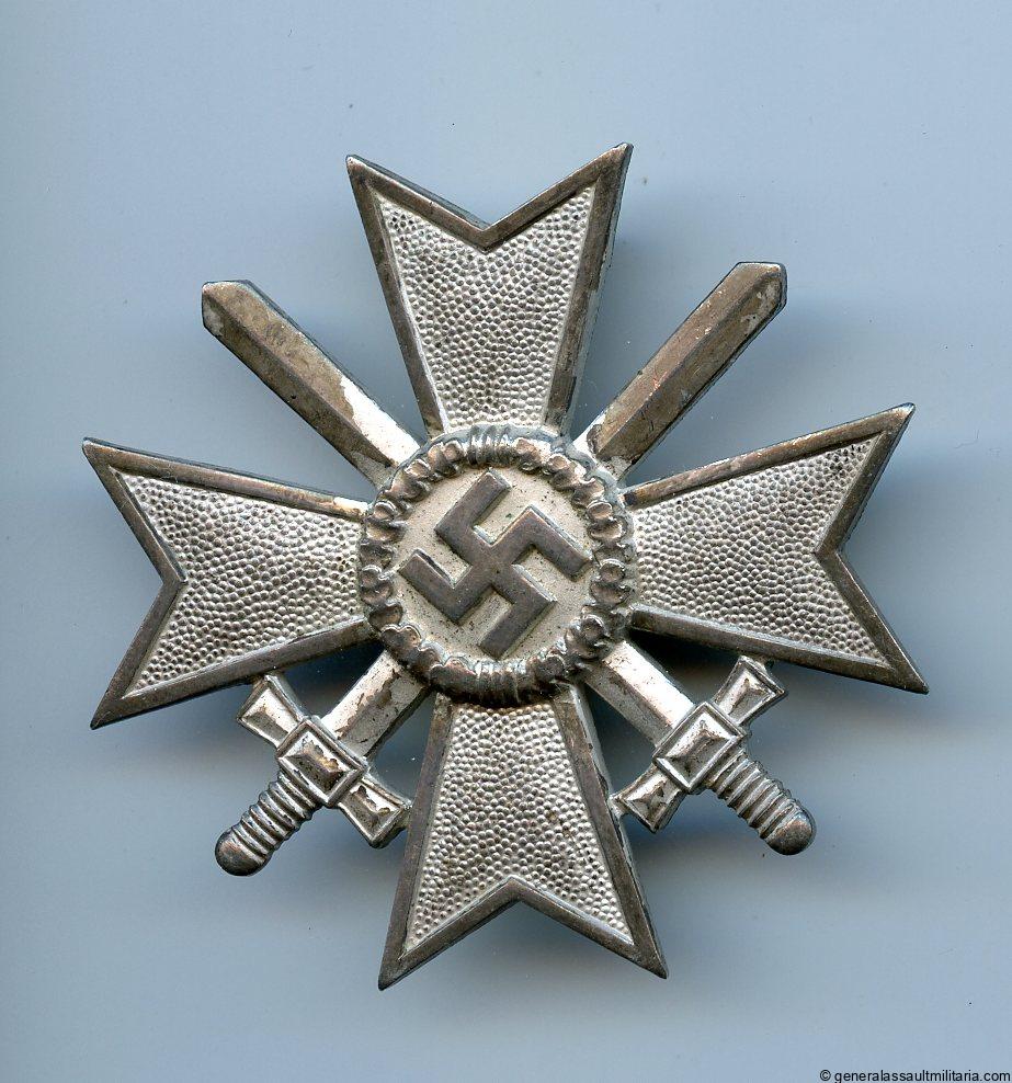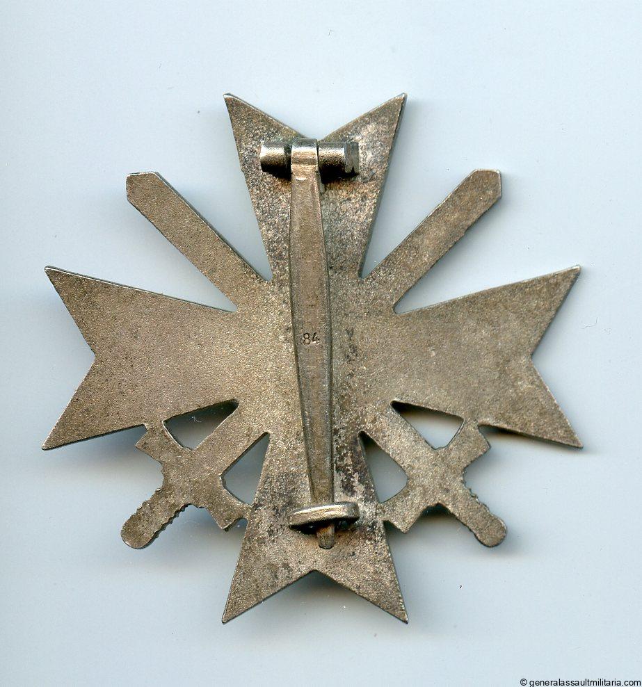 War merit cross with swords 1st class – 84 Carl Poelath, Schrobenhausen. Early tombac construction with silver plated finish and frosted finish on top. Remains in excellent, very lightly worn to unworn condition with most of the bright frosting preserved. Maker marked with the PkZ 84 mark on the pin, excellent quality ‘Kriegsverdienstkreuz’.
