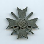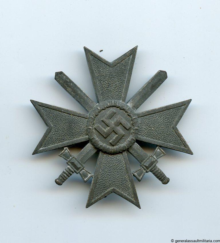 War merit cross with swords first class – B. H. Mayer, Pforzheim. Zink kvk with Mayer L/18 mark on the pin. The cross has lost its finish over time which often the case with this type of silver wash. No damage or repair. Nicely marked more uncommon cross.