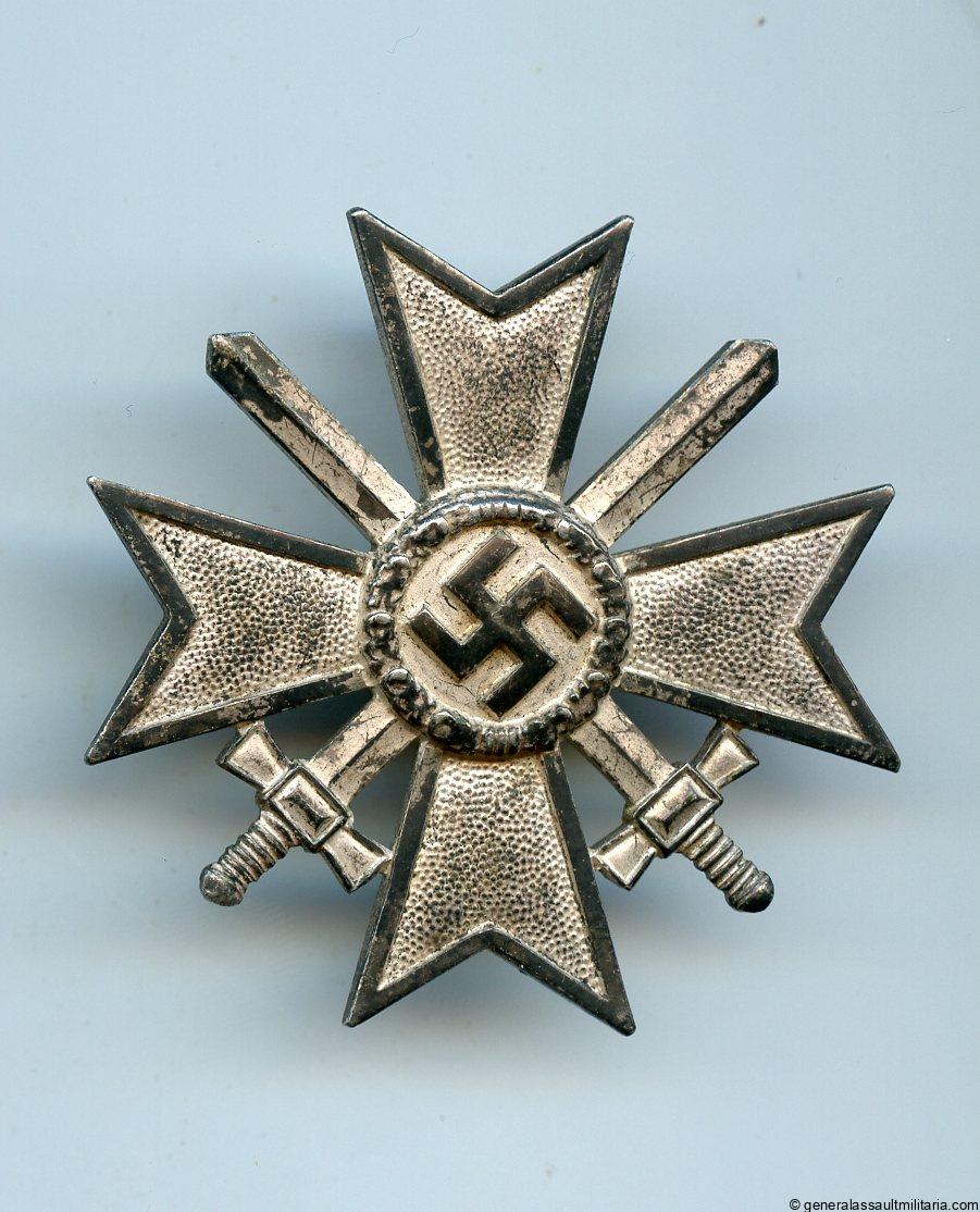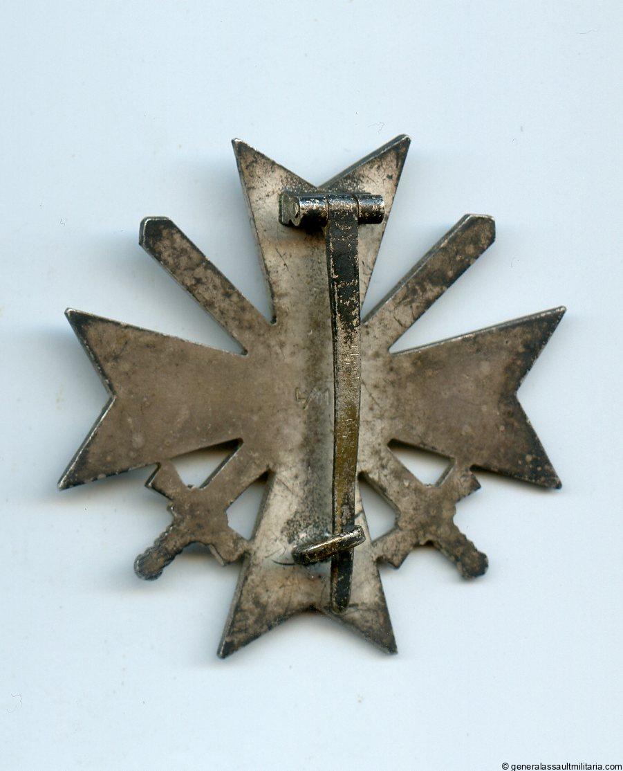 War merit cross with swords first class – L/11 Wilhelm Deumer, Lüdenscheid. Early tombac cross with L/11 LDO mark on the back of the cross. Remains in worn condition with all the silver plating still on the badge and some of the frosting still in bright condition. Shows a beautiful patina giving this lightly worn cross lots of character. Very appealing and good quality LDO marked Deumer cross.