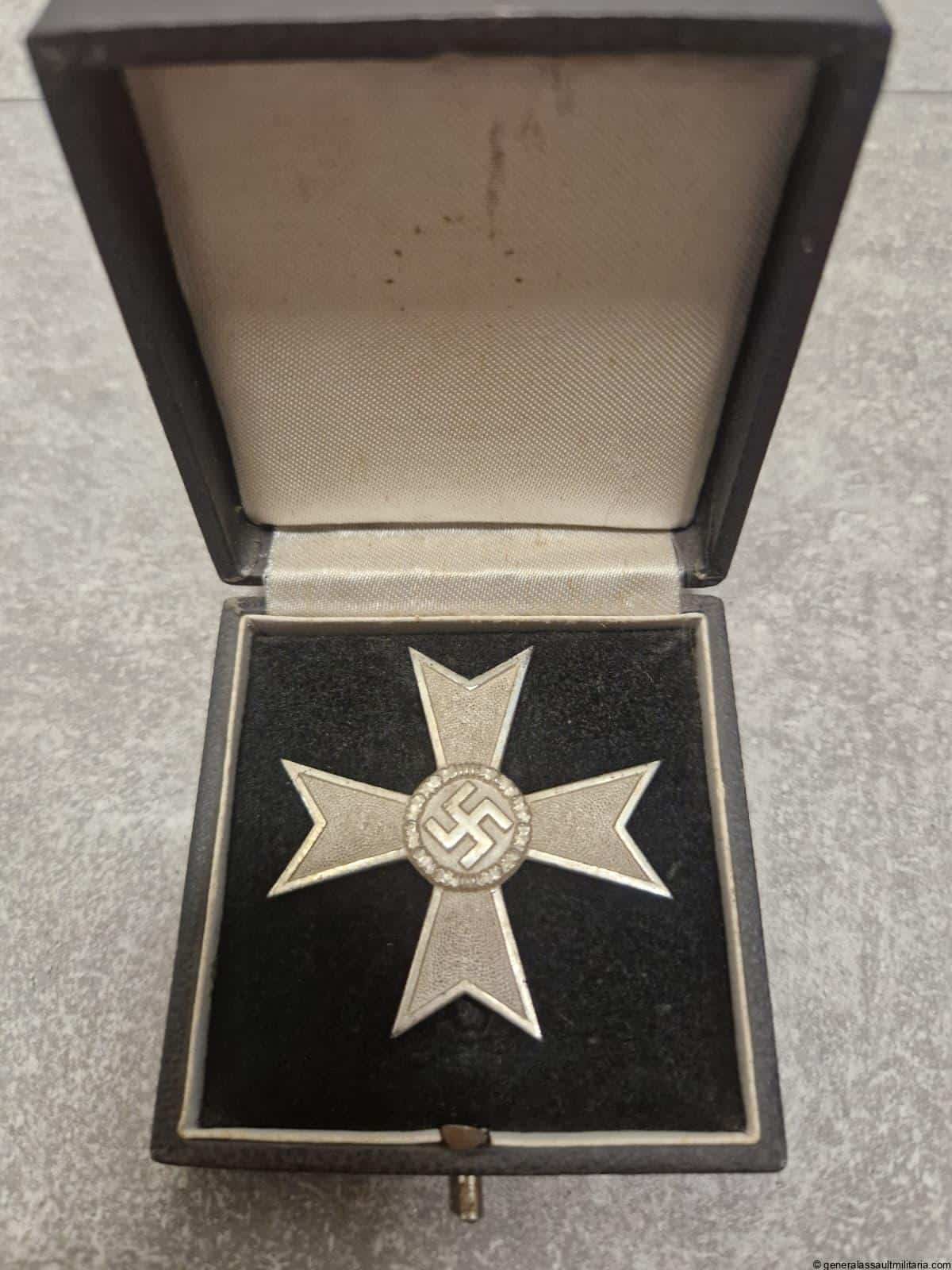 War merit cross without swords 1st class cased – MM4 Steinhauer & Lück, Lüdenscheid. Early war tombac cross with silver plated finish and frosted surface. Remains in unworn near mint condition with full finish remaining. Comes with excellent matching case showing moderate wear to the outside and mint inside.