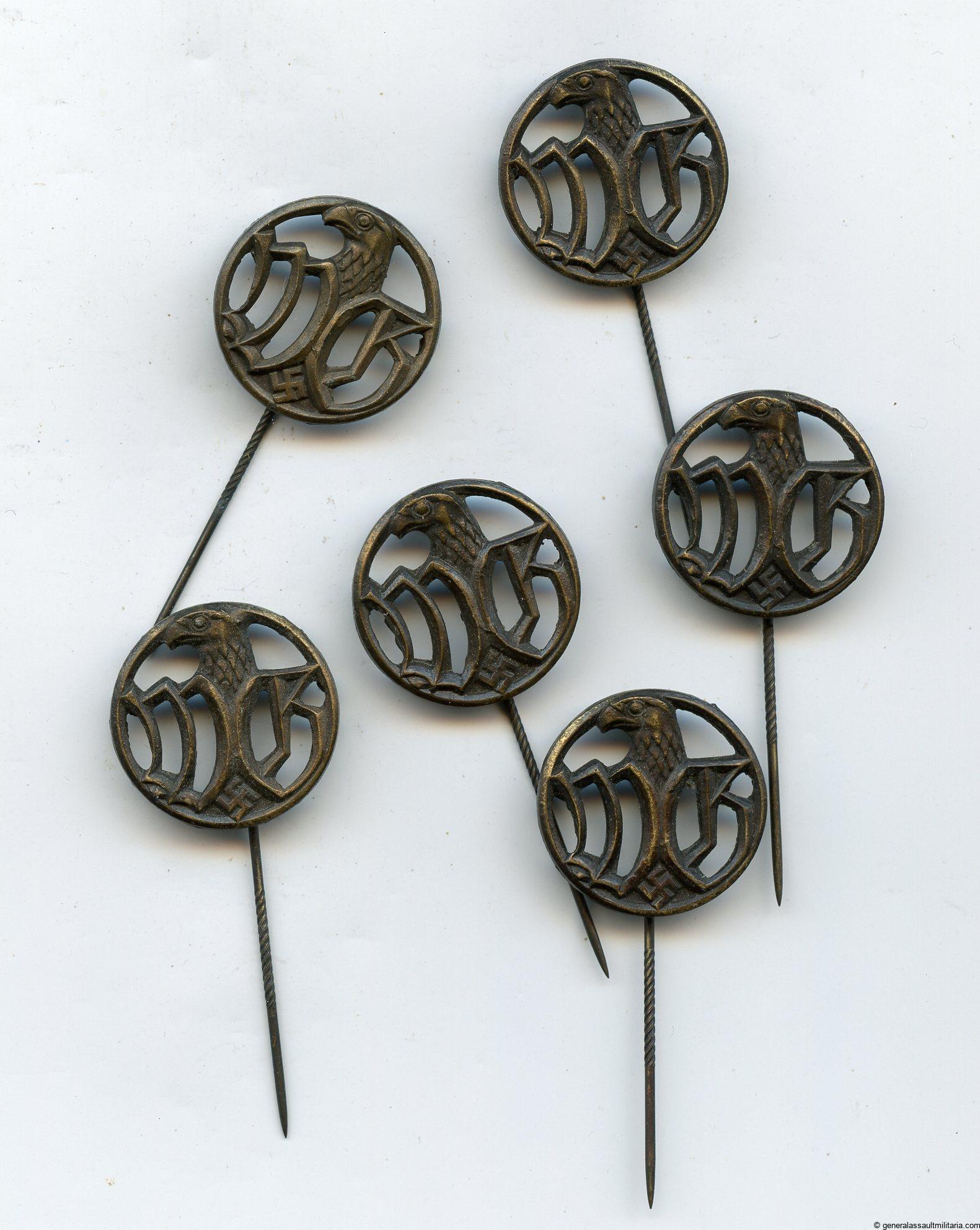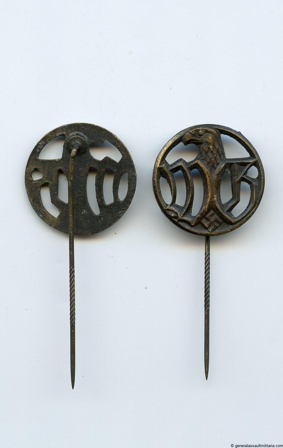 ‘Wehrmacht Gefolge’ stick pin – C.E. Juncker, Berlin. Zinc 23mm pin for male members of the members of German armed-forces auxiliary organizations. Female pins feature a brooch like setup.