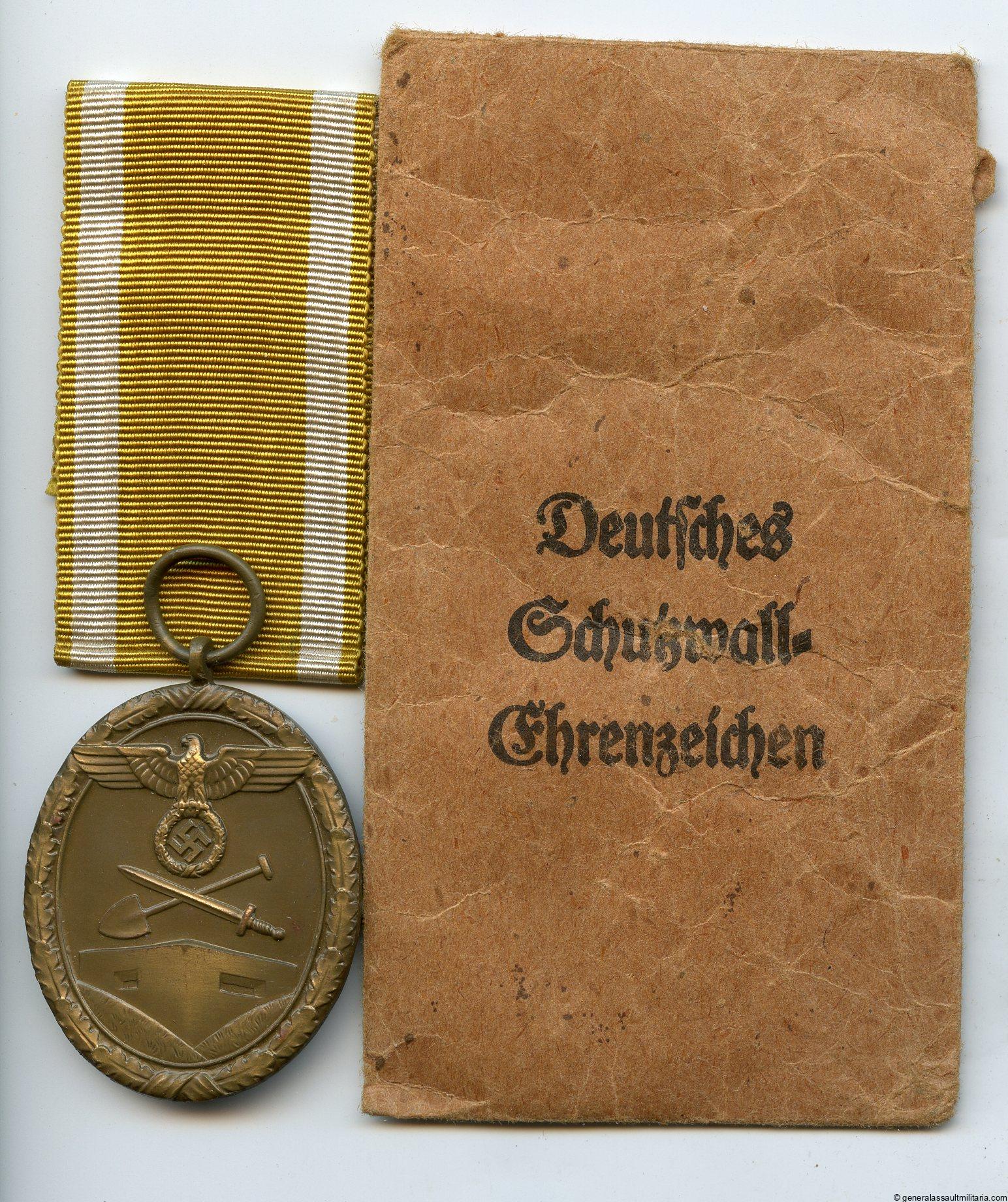 West wall medal + packet – Franz pichl, Innsbruck. Early tombac West wall medal with perfect bronze finish. comes with matching Karl Pichl packet in excellent condition and the unissued ribbon from the packet. Top set.