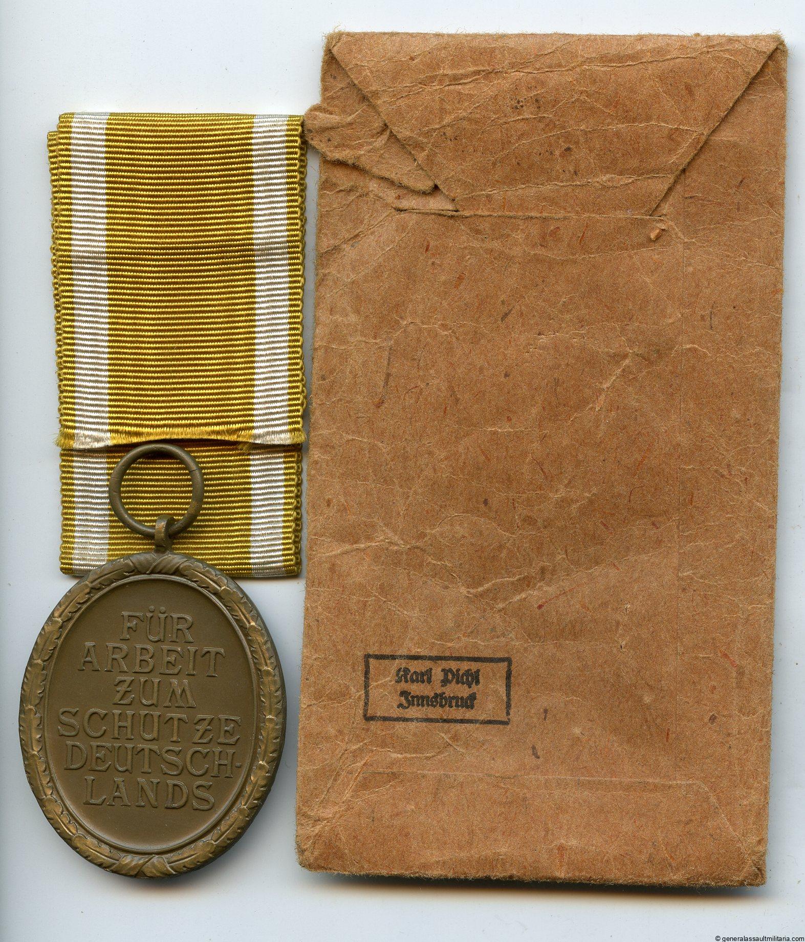 West wall medal + packet – Franz pichl, Innsbruck
