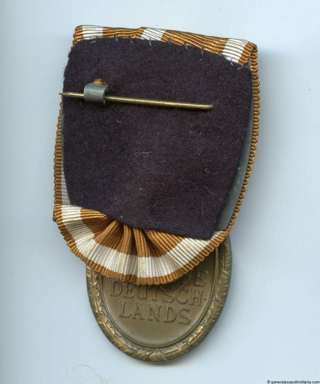 West wall medal single mounted. Tombac medal single mounted to a medal bar. Remains in excellent condition with blue cloth backing.