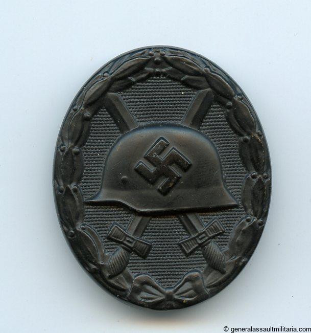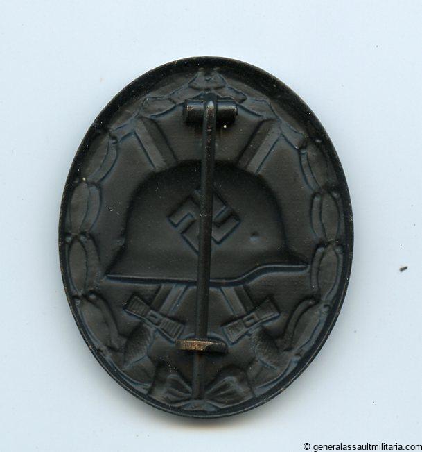Wound badge Black – Unknown maker. Hollow tombac wound badge with mat black paint and directly soldered catch and hinge. Unworn condition with only a small chip of paint missing on the swastika. Near mint would badge without damage or repairs.