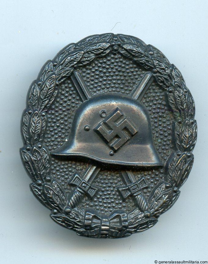 Wound badge in black 1st pattern – anodized finish. Early tombac wound badge with grey/gun blue anodized finish. Remains in mint condition with full finish remaining and no sign of wear. Great look to it and was the better finish variant available for purchase back in the day. Top badge!