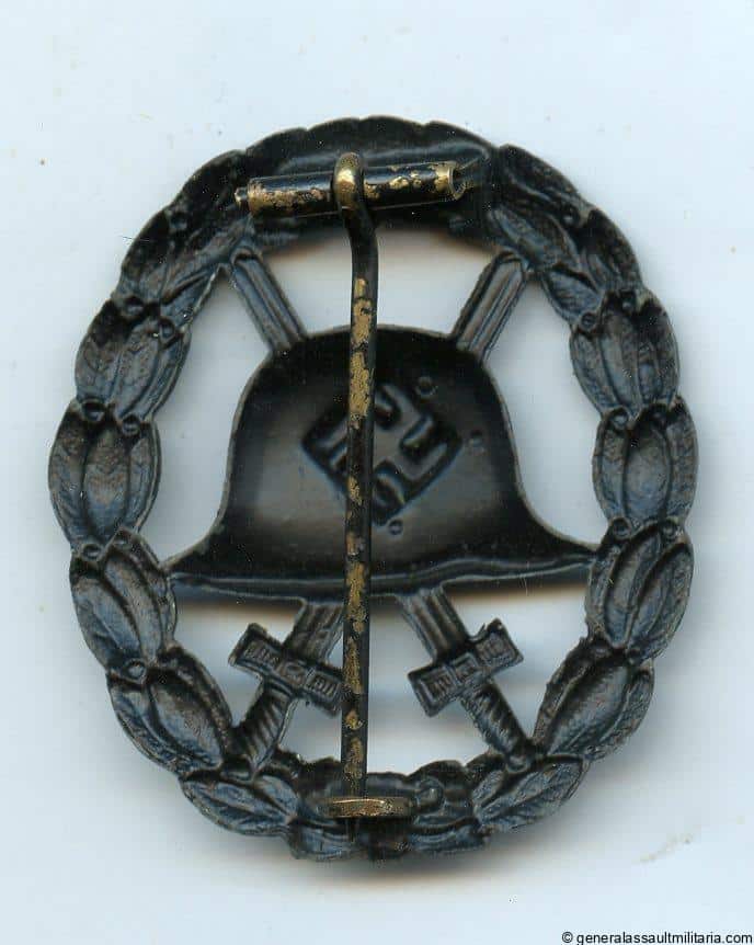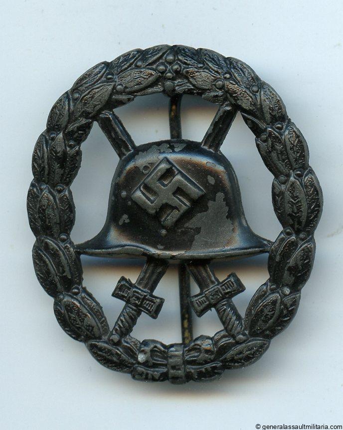 Wound badge in black 1st pattern – Otto Schickle, Pforzheim. Early war zinc wound badge with cut out parts and Schickle design and setup. Remains in good condition with some of the finish worn down. Very well preserved for a zinc example. Shows great finish and only light wear. Very uncommon variant!