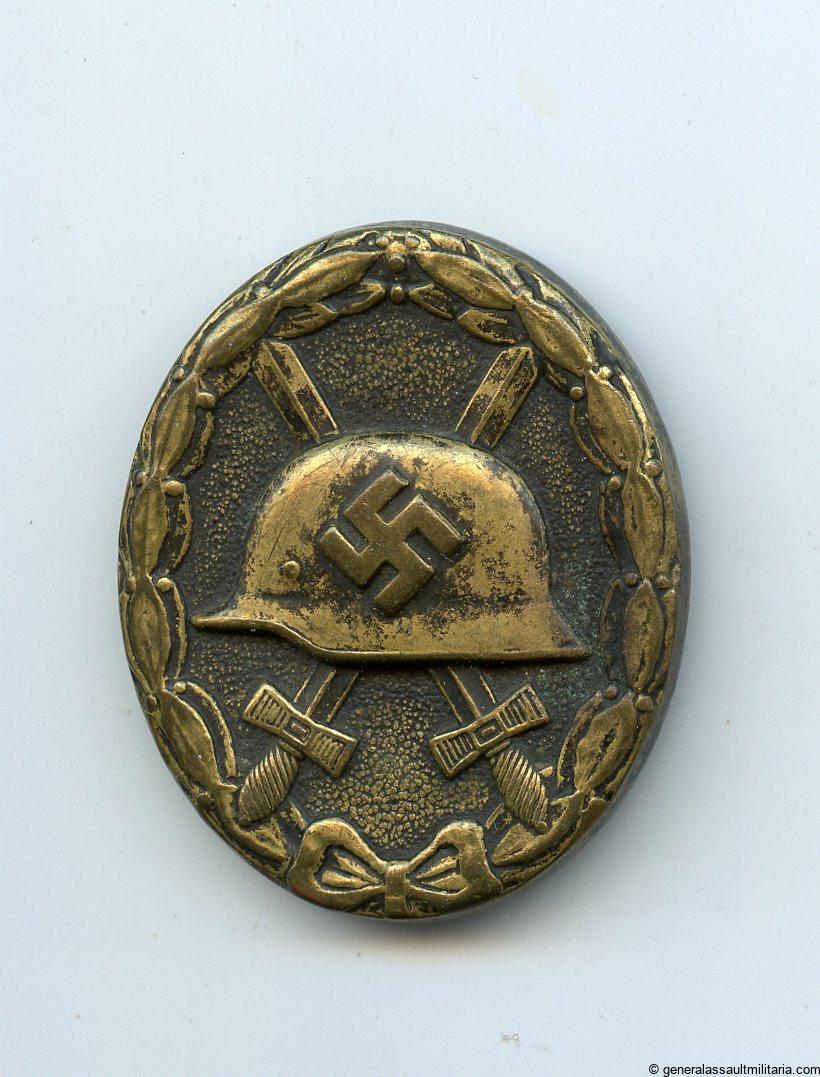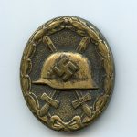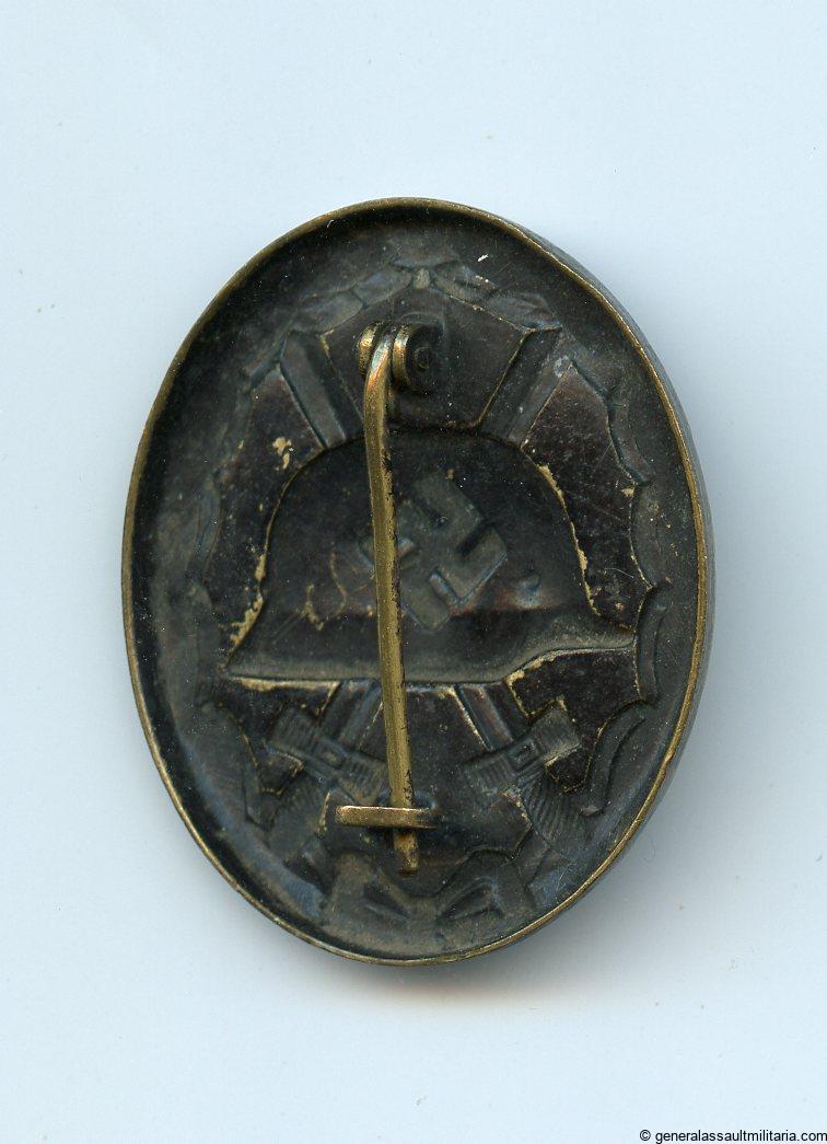 Wound badge in black – ‘Chaos pattern’. Hollow tombac wound badge with Chaos pattern dotting which has been linked to Gustav Brehmer in the past. Remains well worn condition and has lost most of the black paint. Still very appealing heavily worn wound badge.