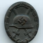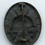 Wound badge in black – Chaos pebbling variant. Early tombac wound badge with semi gloss black finish. Remains in unworn to lightly worn condition and only shows a bit of finish missing on the swastika and leaves with patinated tombac showing underneath. Sought after variant with unique ‘chaos’ like pebbling.