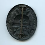 Wound badge in black – Deschler/wiedmann variant. Hollow zinc wound badge with larger and different design than other Wound badges. Remains in near perfect condition with glossy black lacquer. Only shows the zinc coming through on the outlining of the edges and a small spot on the swastika. Uncommon variant in top condition.