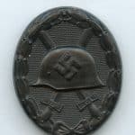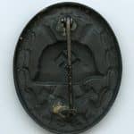 Wound badge in black – Unknown maker. Near mint steel wound badge in black with matt black finish. Remains in unworn condition and shows all the original paint remaining on the badge. Commonly encountered wound badge setup which makes it hard to narrow down the maker without comparing front dies.