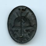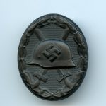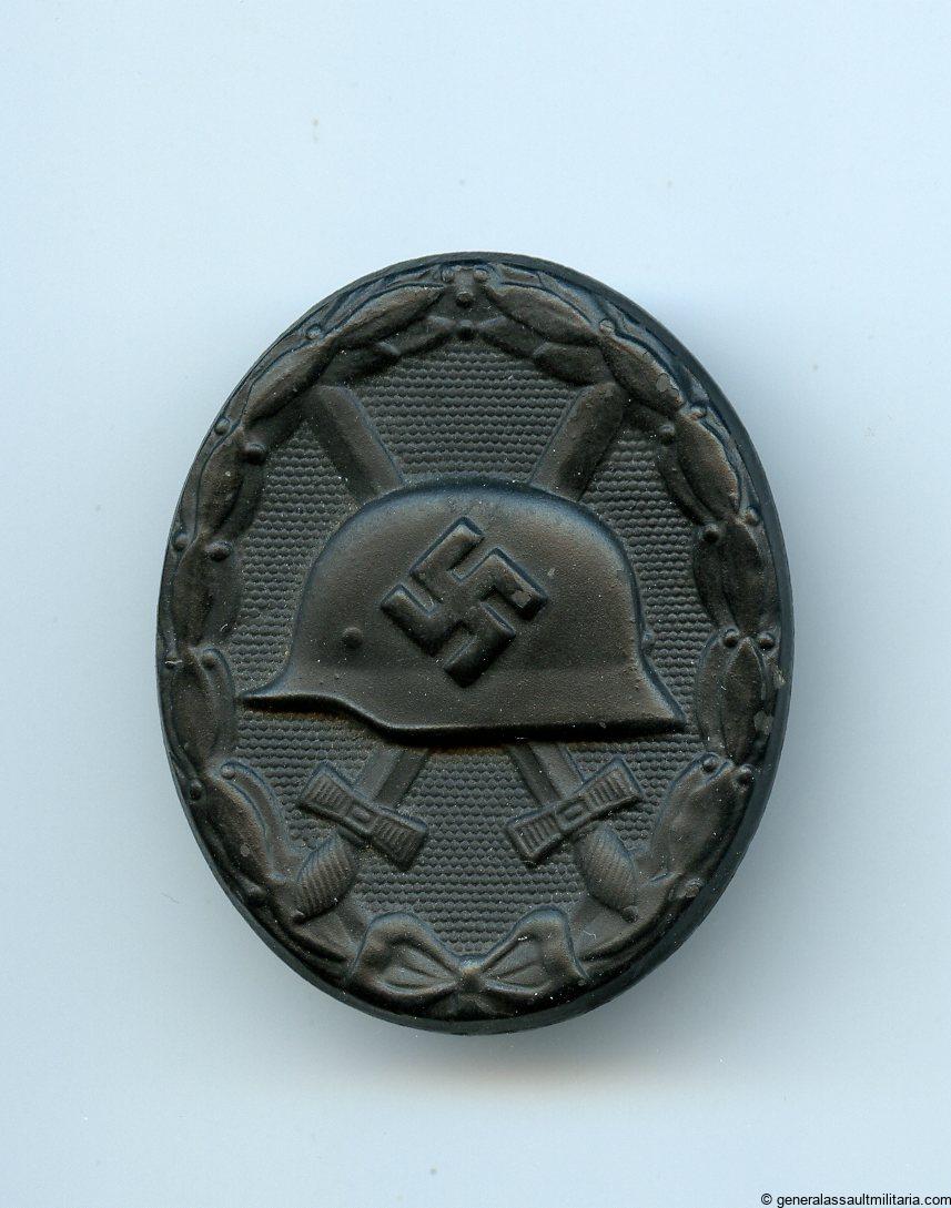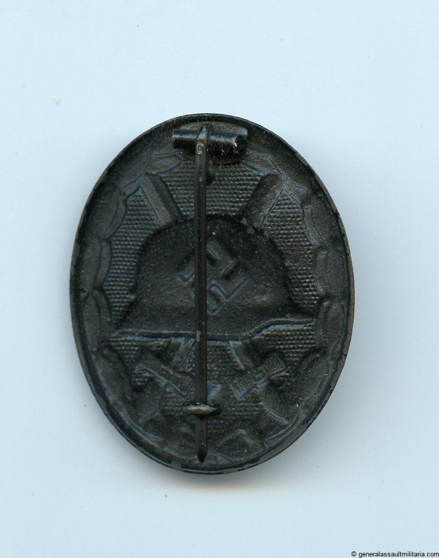 Wound badge in black – Unknown maker. Steel construction Wound badge with sheet hinge and directly soldered catch. Remains in unworn condition and retained the paint almost perfectly.