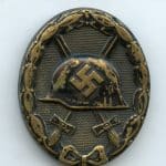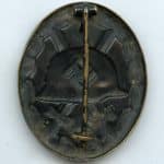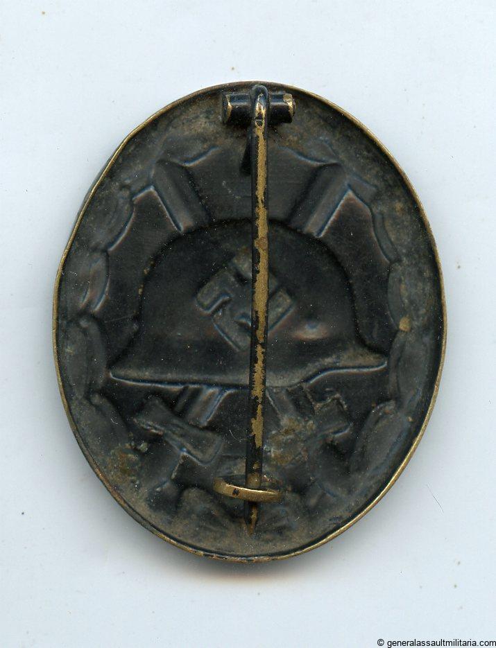 Wound badge in black – Wilhelm Deumer, Lüdenscheid. Early hollow tombac Verwundetenabzeichen with semi gloss black lacquer. Remains in well worn condition and has about half of the finish worn down on the front. Beautiful wear pattern giving the badge a lot of character. Unmarked example but with typical Deumer setup and matching design.