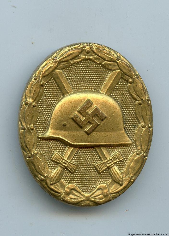 Wound badge in gold – Hauptmünzamt, Wien. Early tombac wound badge with gilded finish and typical Hauptmünzamt design and setup. Remains in only lightly worn condition with near perfect gilding except for the swastika edges. Top unmarked GWB!
