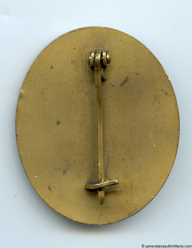 Wound badge in gold – Hauptmünzamt Wien. Early war solid tombac wound badge with Hauptmünzamt design and setup. Remains in lightly worn condition with most of the gilding still intact. Nicely worn gold example with short pin setup.