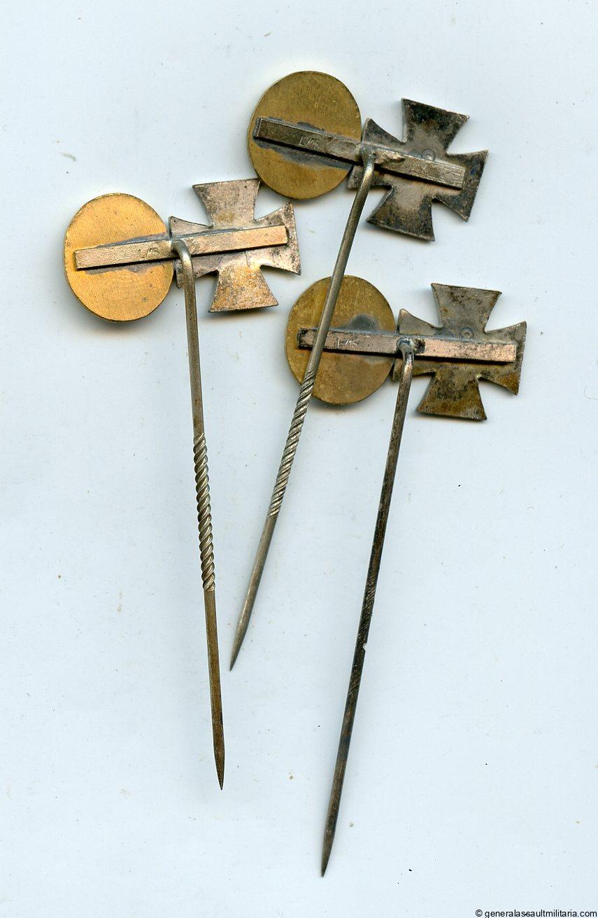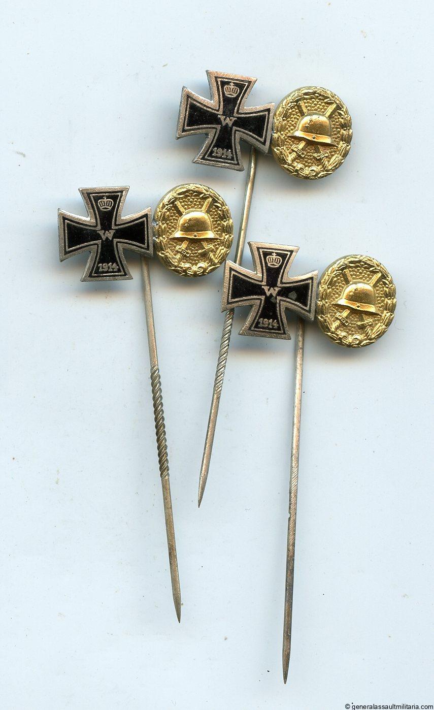 Wound badge in gold + iron cross stickpin – L/15 Otto Schickle, Pforzheim. Pin bar 16mm enamel iron cross with gold grade wound badge attached to a L/15 marked bar.