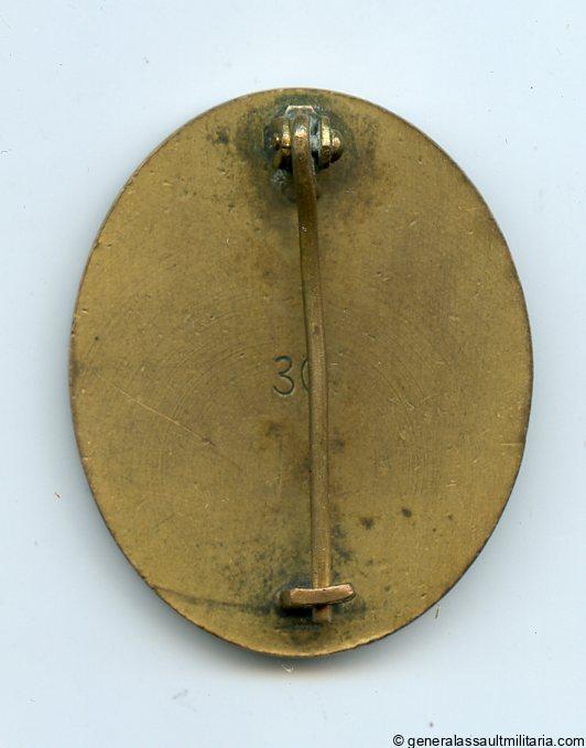 Wound badge in gold – MM30 Hauptmünzamt Wien. Mid war tombac gold grade wound badge with PkZ 30 mark on the reverse and gilded finish. Remains in good worn condition with some of the gilding worn down and a light patina on the front and reverse. Lot of character on this nicely worn example.