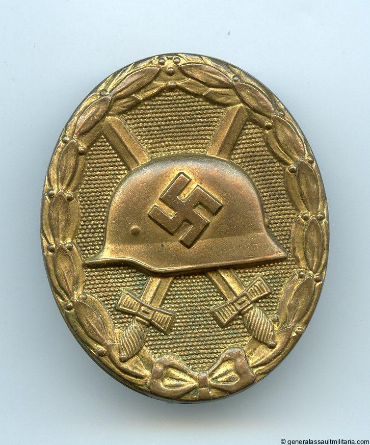 Wound badge in gold – UM30 Hauptmünzamt, Wien. Early war tombac construction wound badge with Hauptmünzamt design and setup. Remains in excellent worn condition with some of the gilding worn down, giving it a great has been there look with just the right wear. Excellent quality wound badge.