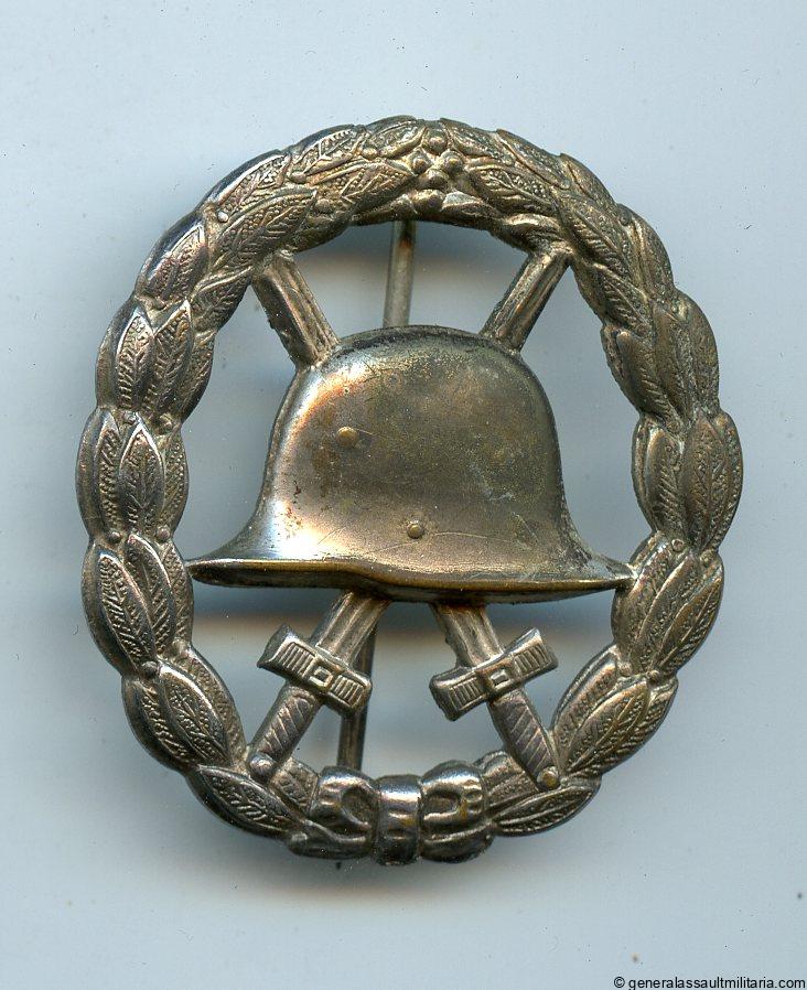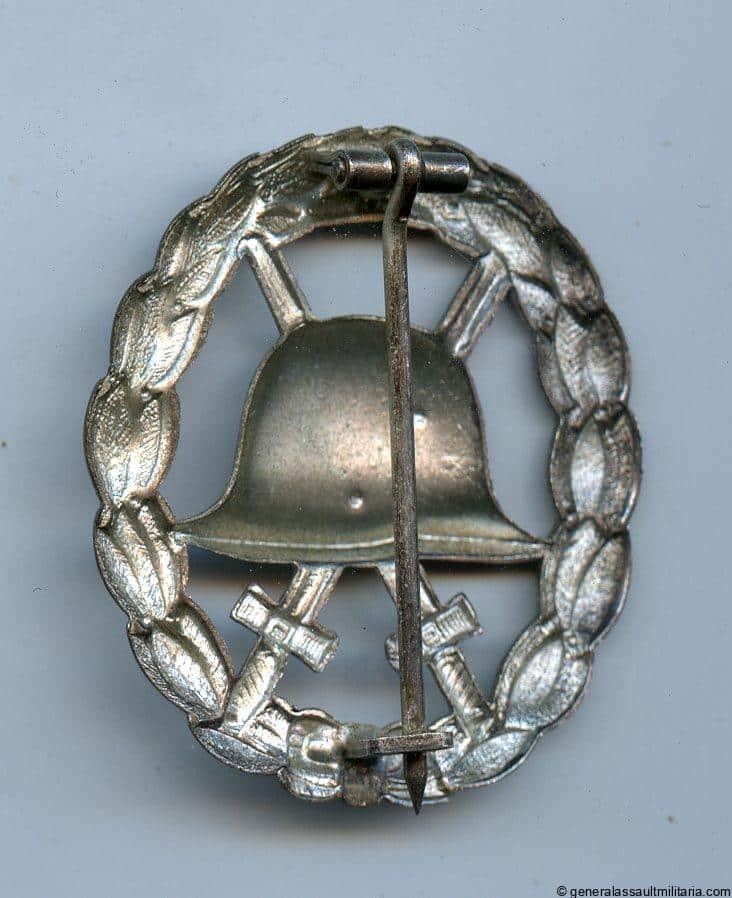 Wound badge in silver 1918 cut out – Otto Schickle, Pforzheim. Tombac construction with silver plated finish and cut out parts. Remains in worn condition and shows the typical Schickle design and setup. Sought after variant.