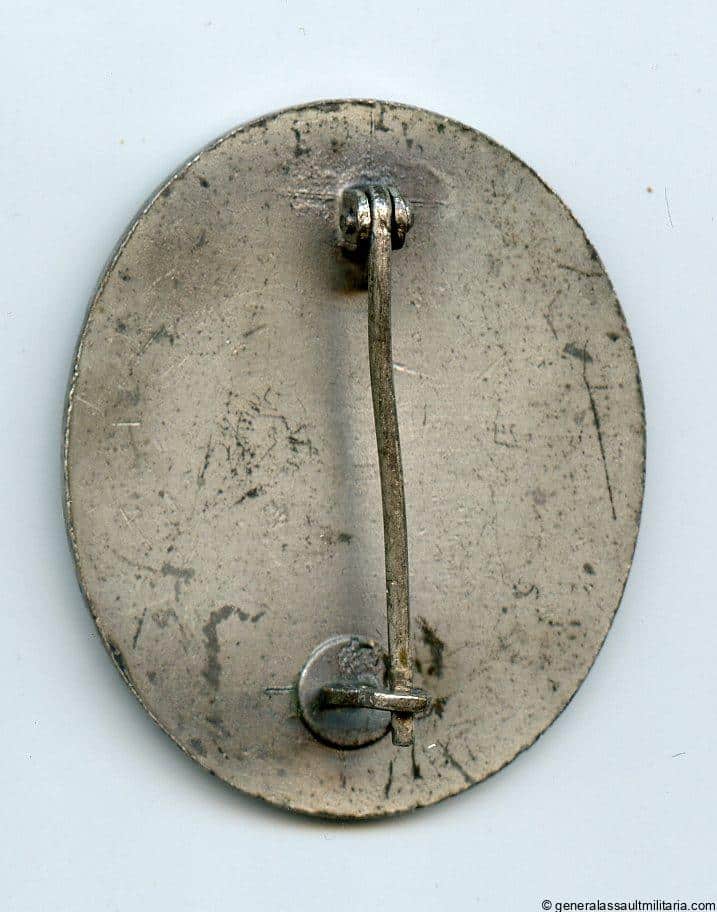 Wound badge in silver – Deschler/Wiedmann “Übergrosse”. Early war tombac wound badge with silver plated finish and excellent preserved protective finish. Remains in unworn too very lightly worn condition. Excellent example with a variant setup up that is seldom seen and this example was most likely made by Wiedmann.