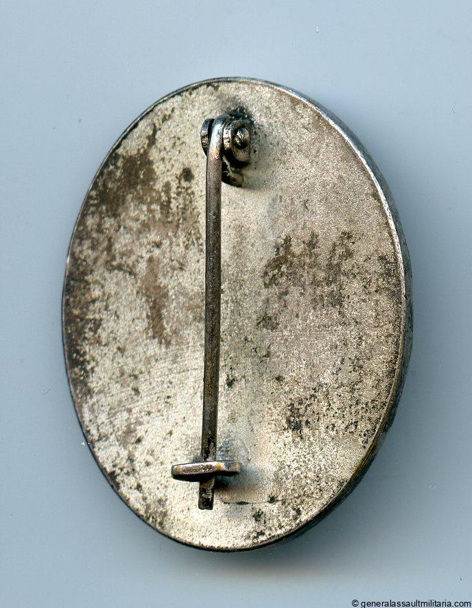 Wound badge in silver – Förster & Barth, Pforzheim. Early war tombac wound badge with silver plated finish. Remains in well worn condition some of the plating worn down on the front and a very light patina. The back retained the frosting and plating nice and features the short pin setup without the lines for the setup placement. This variant being linked to F&B. Uncommon wound badge with a good worn look.