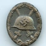 Wound badge in silver – Friedrich Orth, Wien. Late ware zinc VWA with silver plated finish and L/14 LDO mark on the back. Remains in fairly good condition with typical zinc bubbling and some of the finish faded. Very uncommon variant that is rarely offered for sale.
