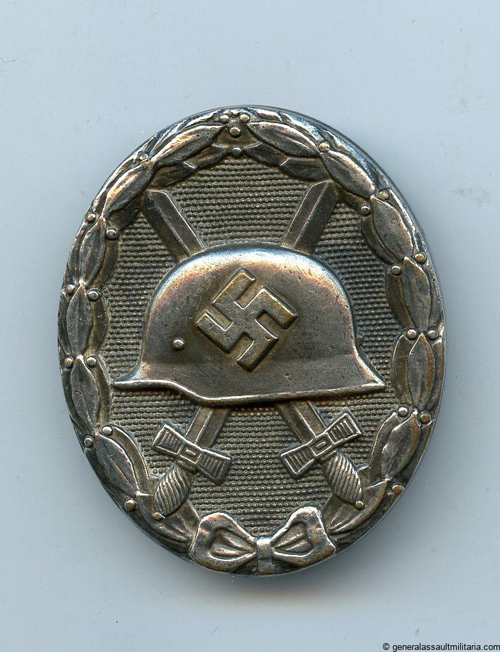 Wound badge in silver – Hauptmünzamt, Wien. Early tombac unmarked wound badge with Haupmünzamt design and setup. Remains in lightly worn condition with nearly all the silver plating present. Might have been lightly cleaned on the front in the past given the typical silver patina on the back. Quality unmarked 30 VWA.