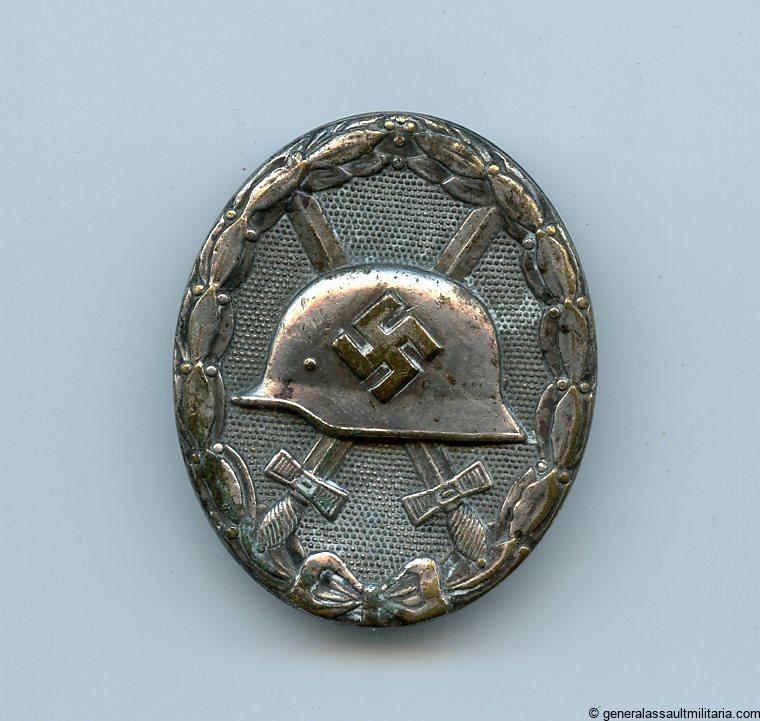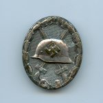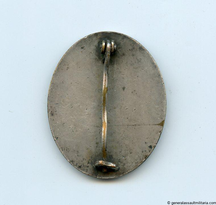 Wound badge in silver – Hauptmünzamt Wien. Silvered tombac ‘Verwundetenabzeichen’. Unmarked maker 30, but a known variant from Haupmünzamt wien. The badge was cleaned at some point and shows some soap or toothpaste residue. Easily removable if the next owner wants to get rid of it. Nicely worn and good quality early WB in silver without damage or repairs.
