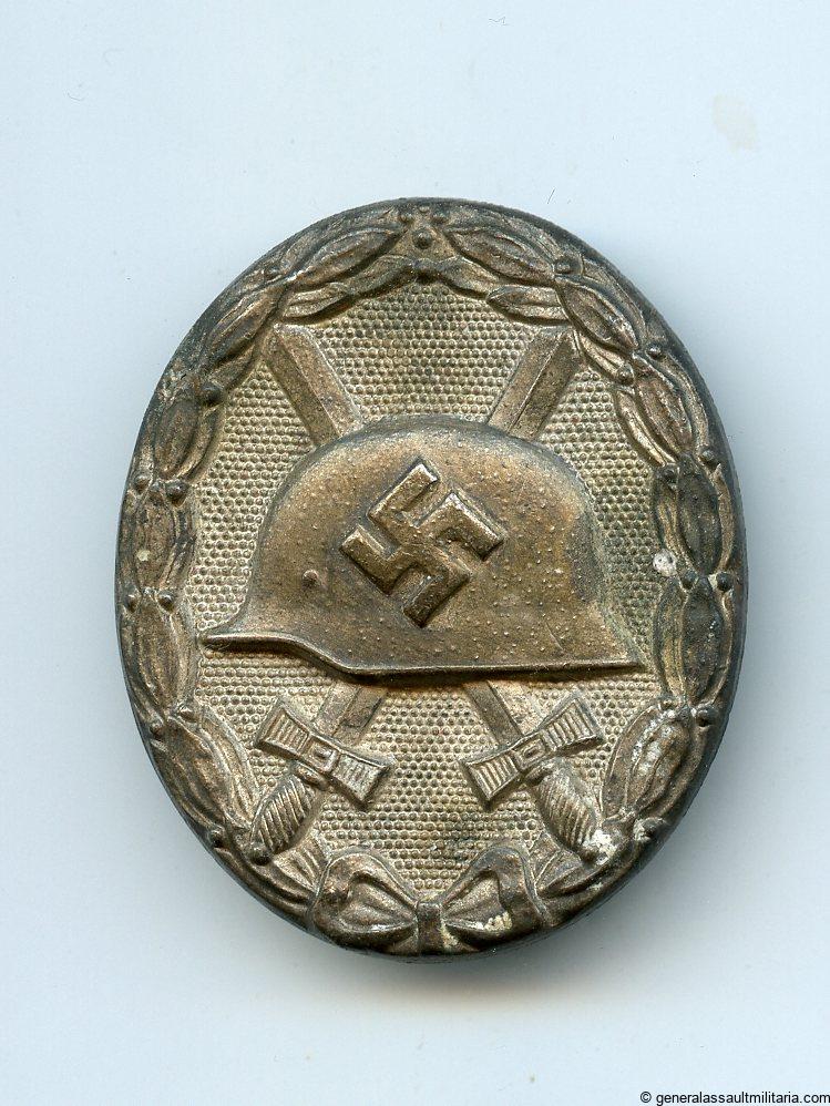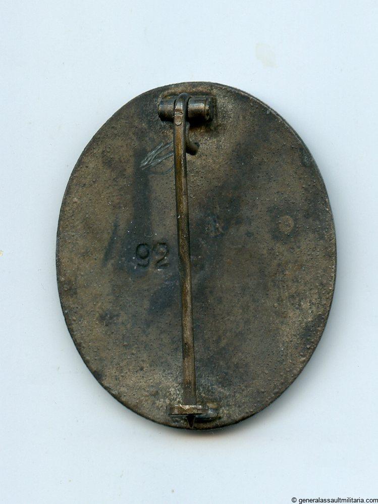 Wound badge in silver – Josef Rücker & Sohn. Uncommon wounded badge in silver marked 92 on the left back. Zink construction with most of the finish remaining, shows a light wear and more darkish patina on the back. Coated example that preserves the finish rather nicely.