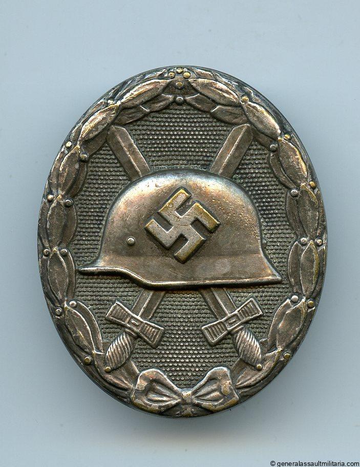Wound badge in silver – UM Hauptmünzamt, wien. Early war tombac ‘Verwundetenabzeichen’ with silver plated finish. Remains in lightly worn condition with only a bit of the finish worn down on the swastika and a very nice untouched patina. Very high quality WW2 German award.