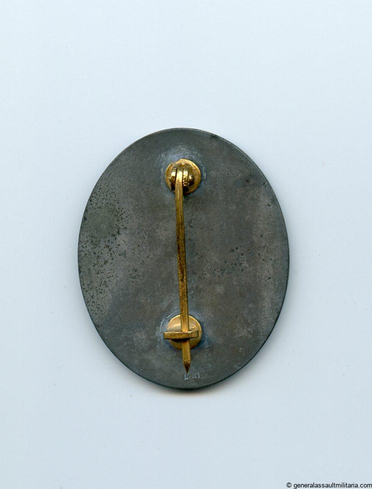 Very uncommon wounded badge in Gold marked L/21. Förster & Barth variant made out of zink, marked at the bottom with the L/21 mark. Slightly worn condition with a nice dark tone to it, all finish was absorbed over the years. Difficult to find later period wounded badge in gold