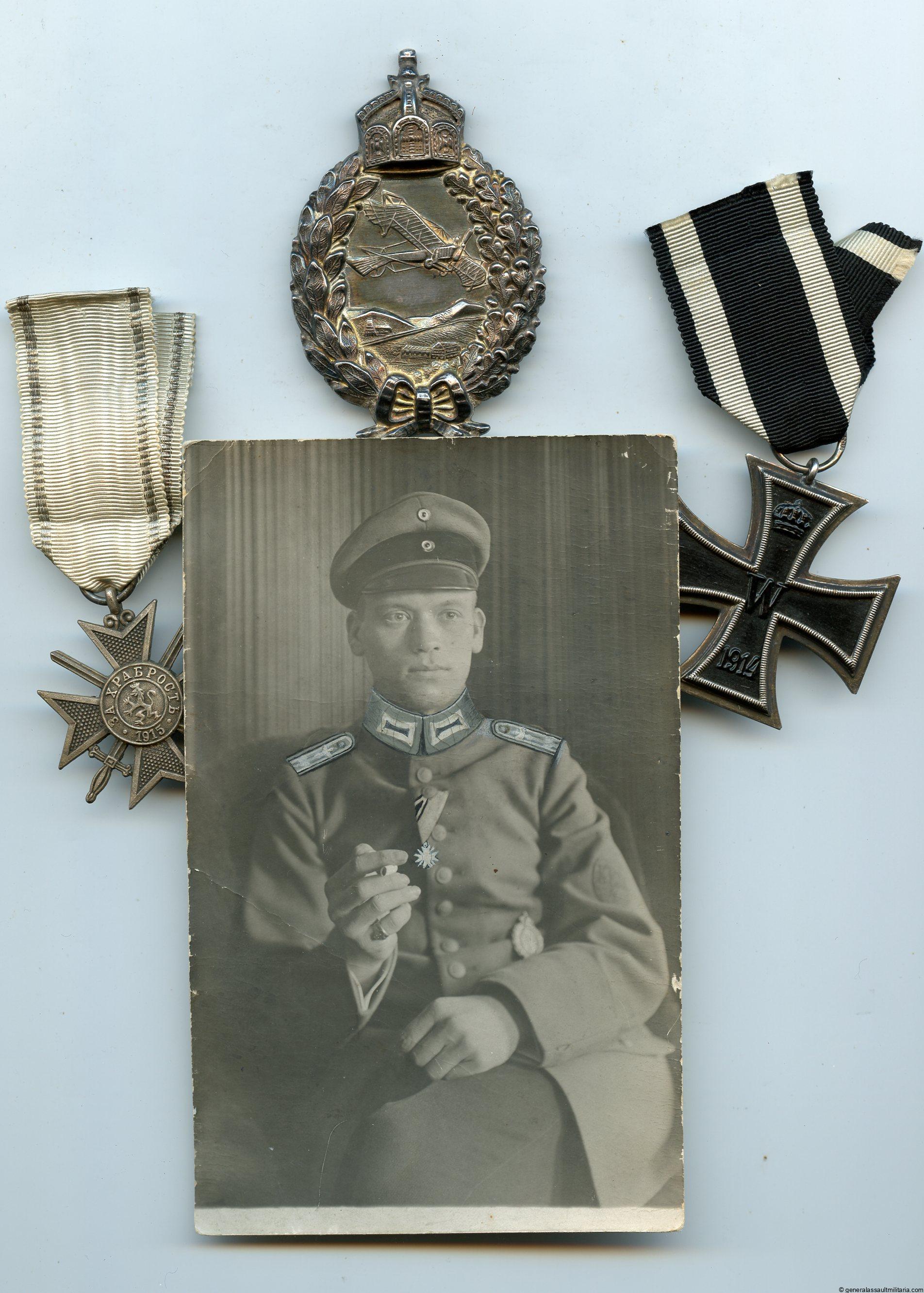 WW1 pilot estate to Wiedenmann. Small grouping with portrait and named 800 silver imperial Prussian Juncker marked pilot badge. Remains in excellent barely worn condition and has been engraved with the name Wiedenmann on reverse. The portrait most likely shows Wiedenmann, however I can not fully confirm this based on what is written on the back or seen on the picture.