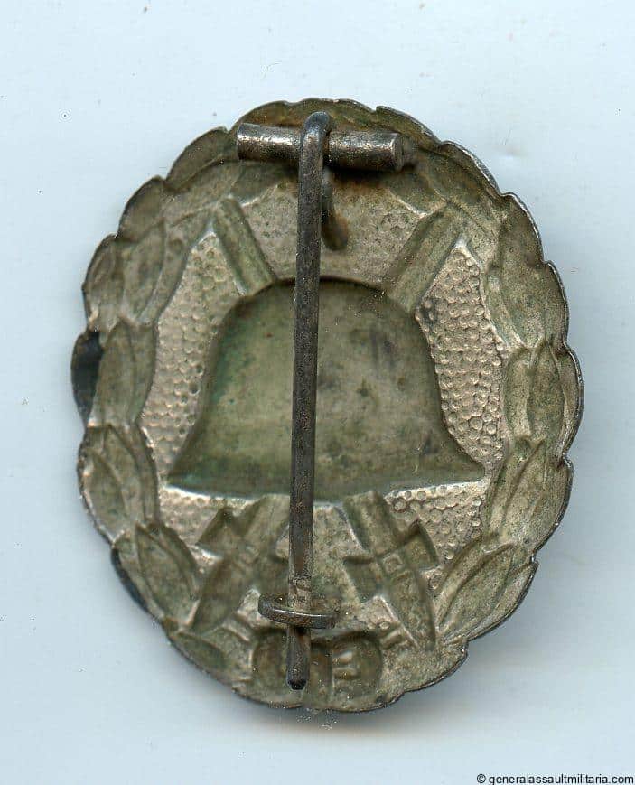 WW1 wound badge in silver – B.H. Mayer, Pforzheim. Steel construction with copper coating and silver plated finish. Remains in well worn condition with the copper coating exposed and a good amount of silver finish worn down. Uncommon example attributed to Mayer.